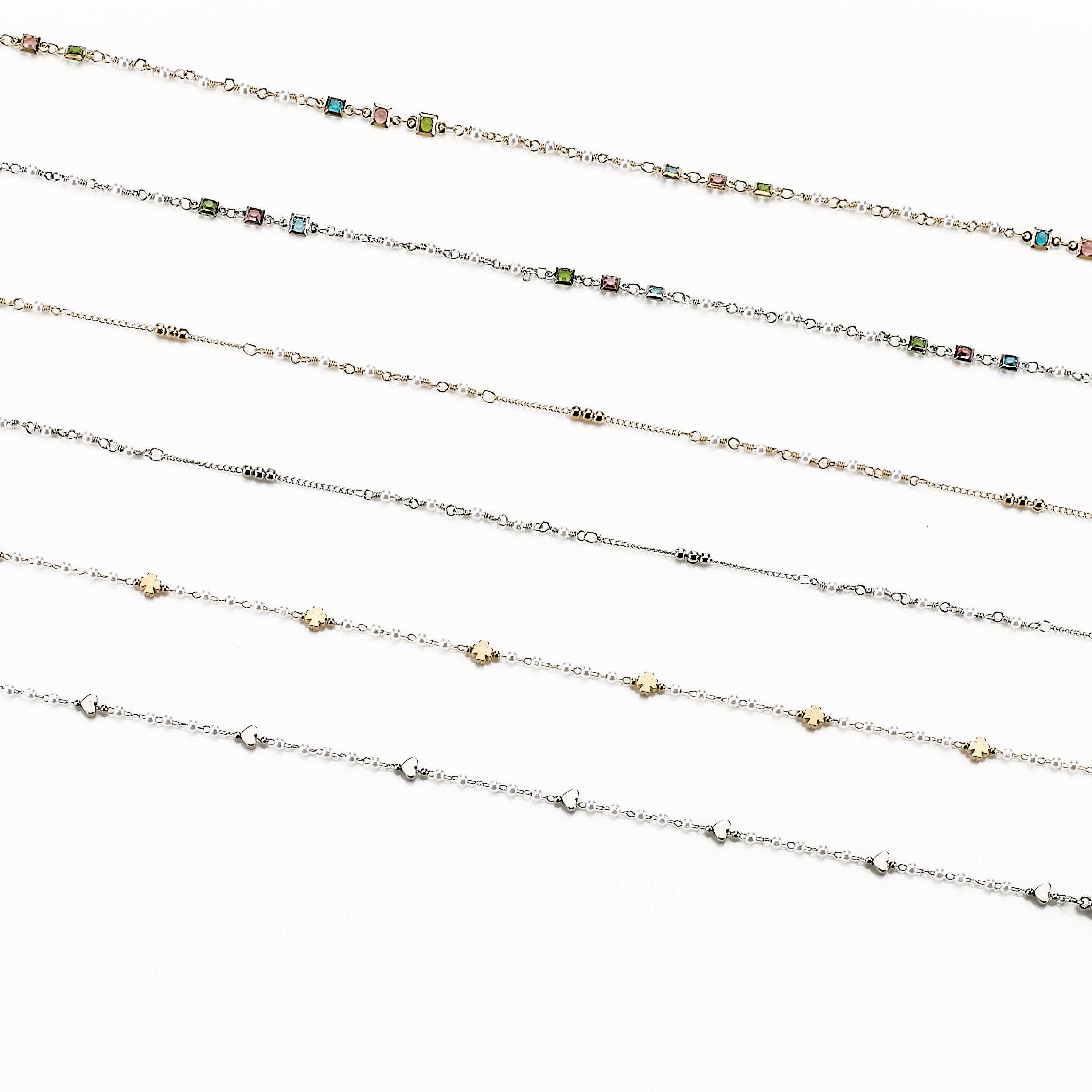 6 catenelle con perle decorative in vassoio espositivo.