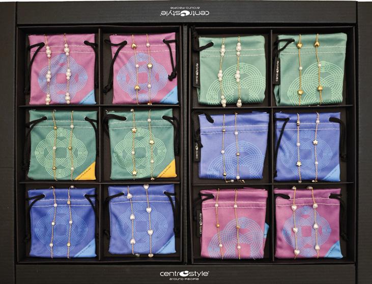 3 modelli di catenelle in metallo con decori, cristalli e perle e perline, nella versione color oro e argento, in un unico vassoio espositivo. Complete di pochette in microfibra. Ref. 74132