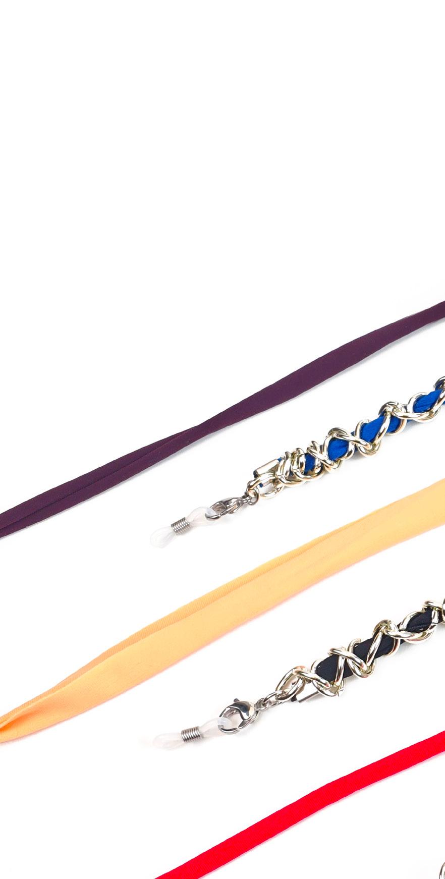 6 catenelle ultraleggere che uniscono l’amata catenella in acetato ad un raffinato foulard. Disponible in 3 varianti colori si possono indossare come un vero e proprio accessorio moda.