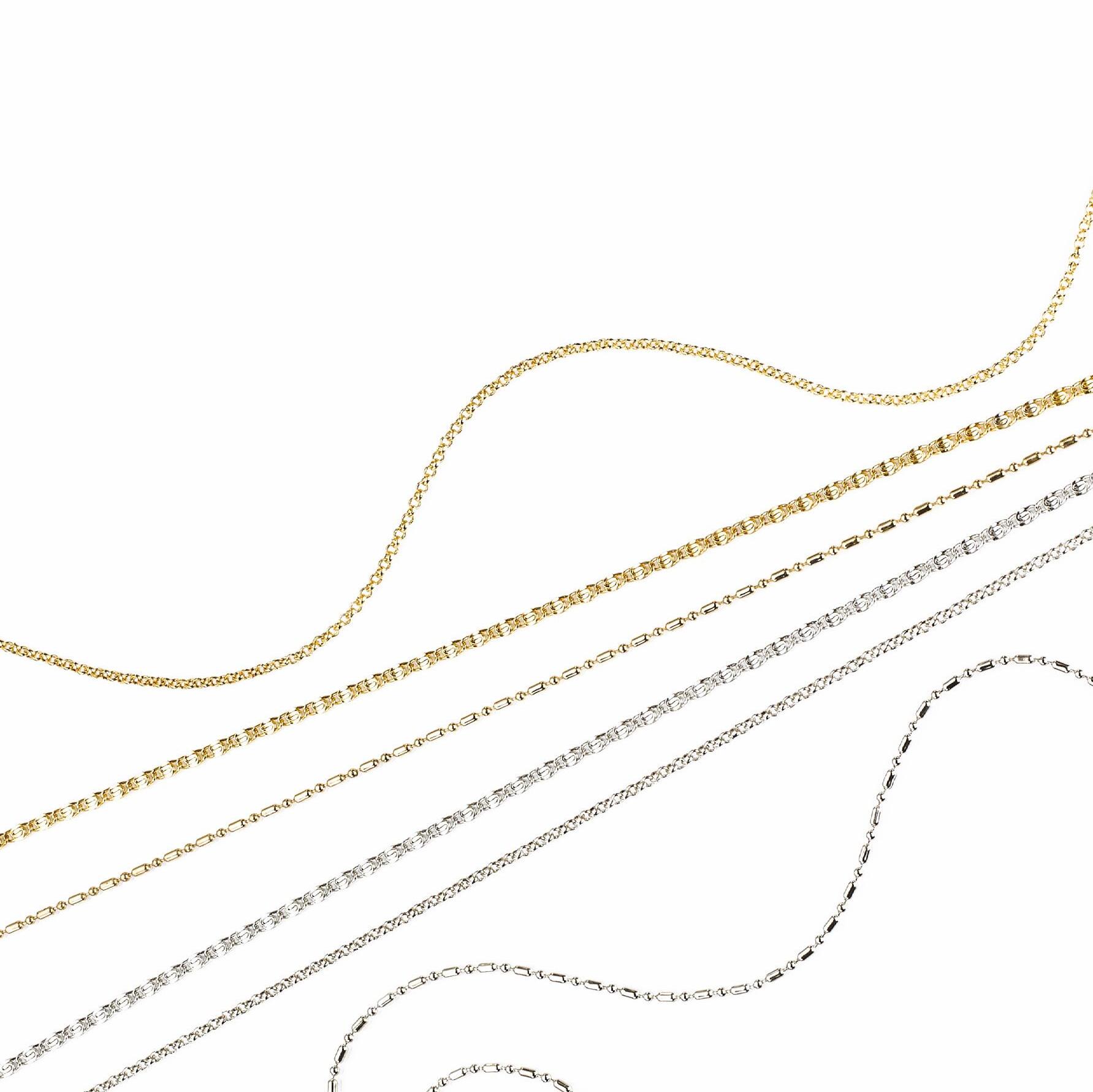 Catenelle in metallo ultraleggere in color oro e argento. 12 catenelle. Modelli assortiti. In pratico vassoio.