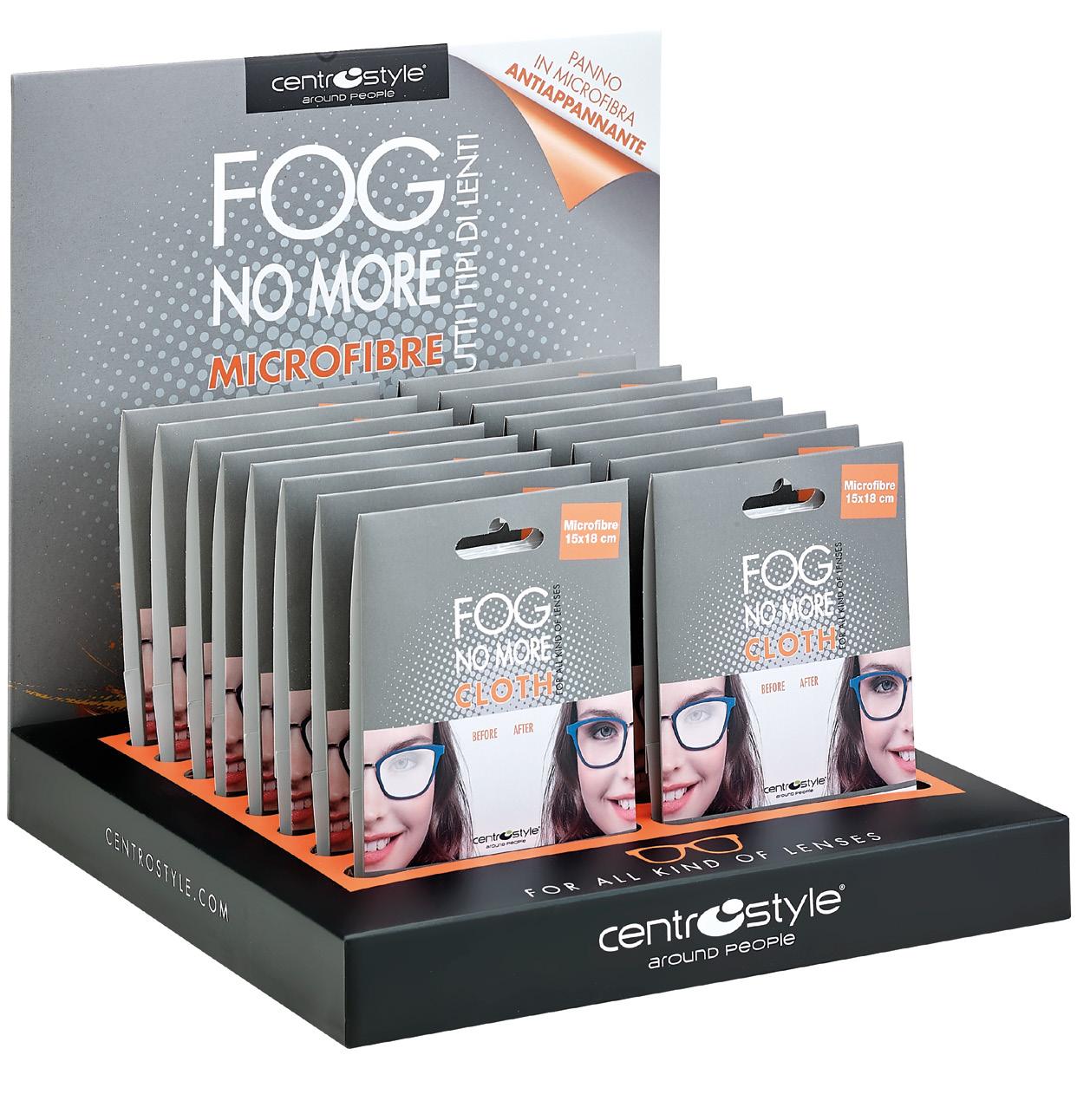 • Strofinare il panno Fog No More su entrambi i lati delle lenti solo dopo averle pulite.