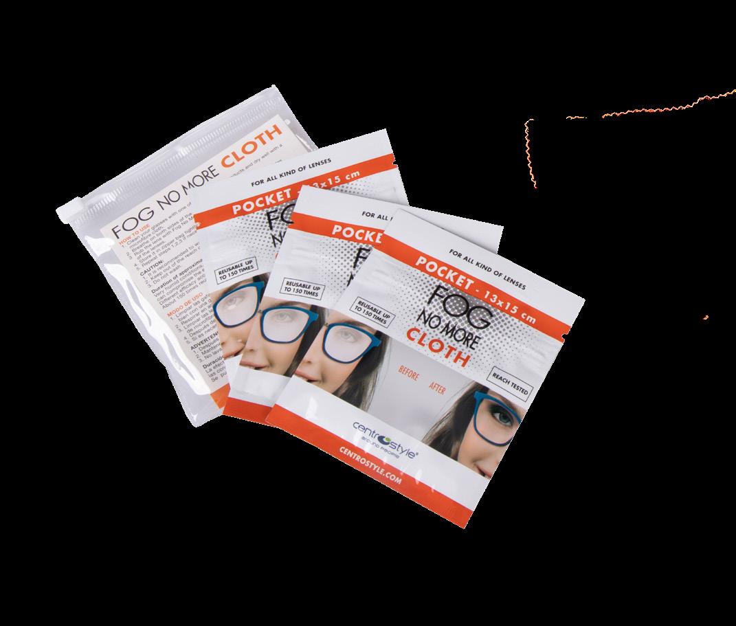 15x18 cm and Fog No More Cloth 13x15 cm in resealable transparent bag.