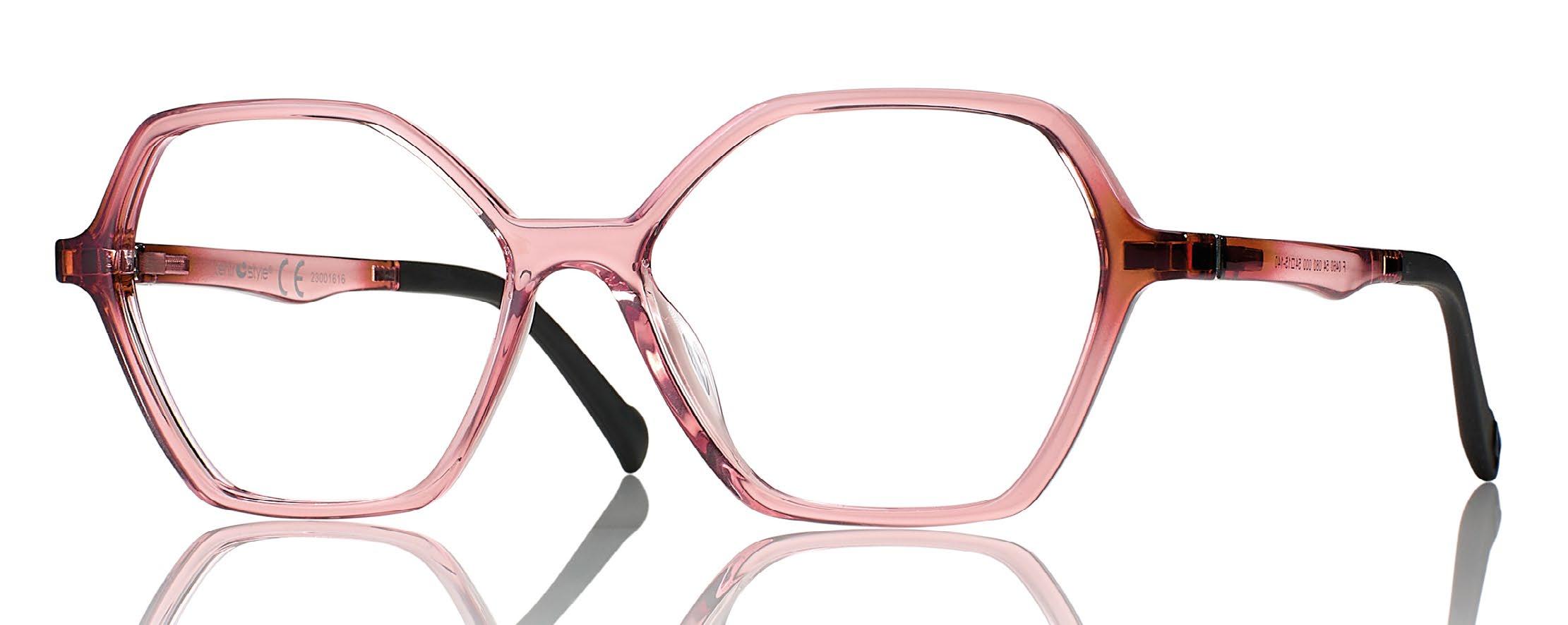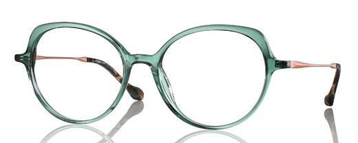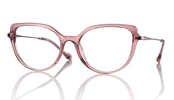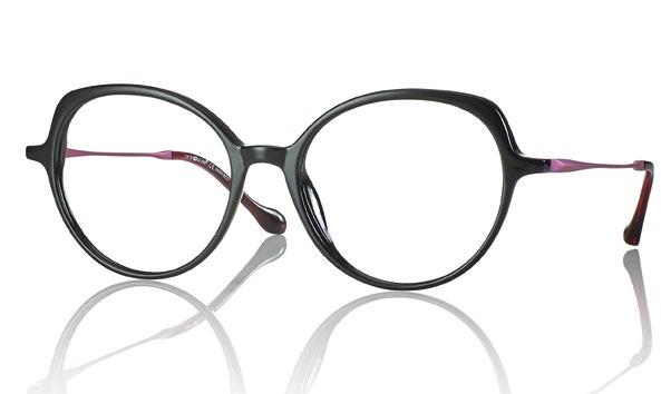 Montatura da donna, sottile e leggera. Frontale realizzato in Rilsan , poliammide biobased derivato dall’olio di ricino, aste in betatitanio , materiale leggero ed ipoallergenico e terminali regolabili in bioacetato , realizzato a partire da fonti rinnovabili.