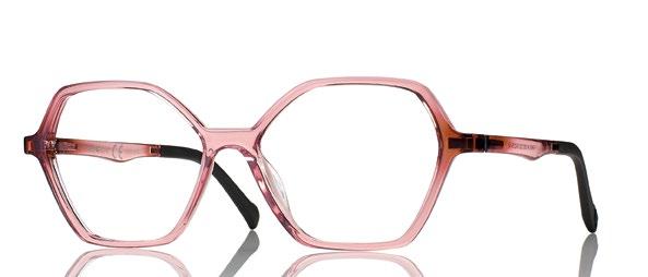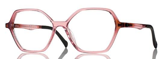 Woman Rilsan frame with shape-changing magnetic clip-on. Side with Integrated flex hinges and adjustable TPE temple tips. New hook system at the top of the magnetic clip-on for greatest adherence and hold to the frame. From prescription frame to sunglasses, the model changes its shape from hexagonal to cat.