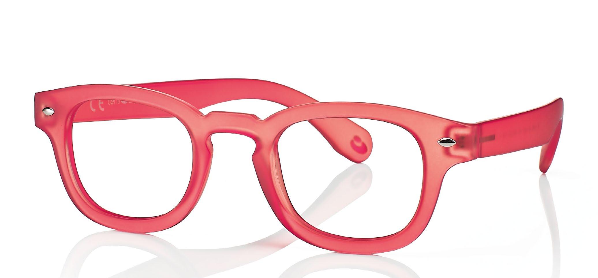 Occhiale da lettura unisex dalle forme vintage con frontale in policarbonato e asta in TR90 in colorazioni trasparenti e dettaglio caratterizzante sul terminale. Astuccio incluso.