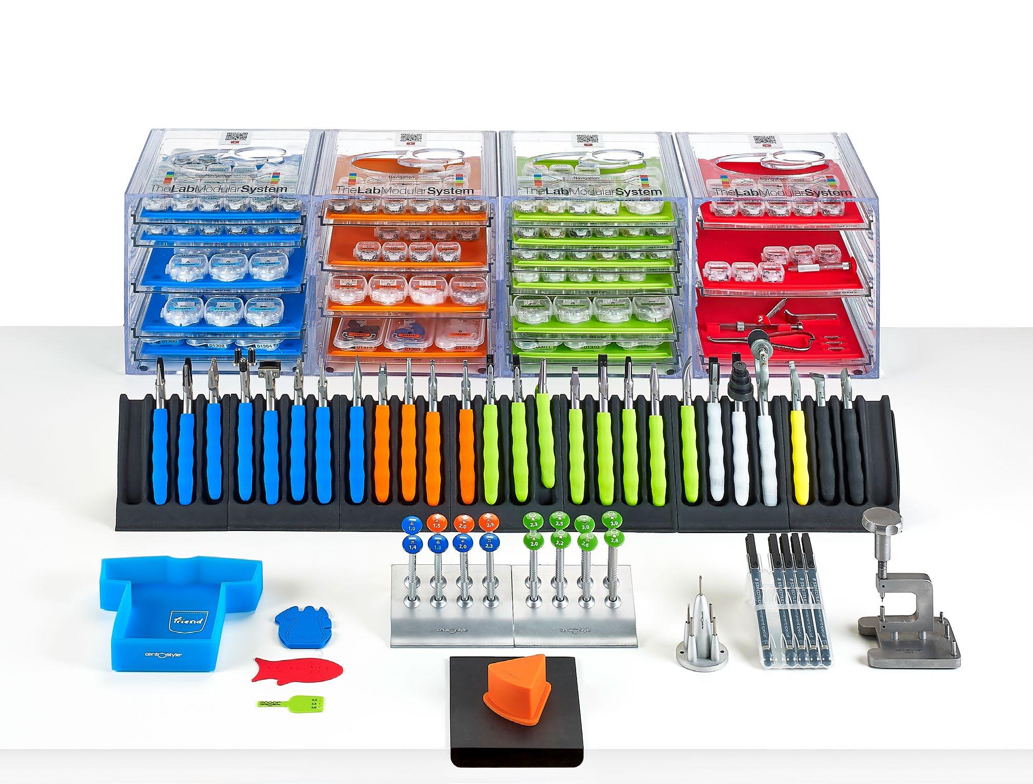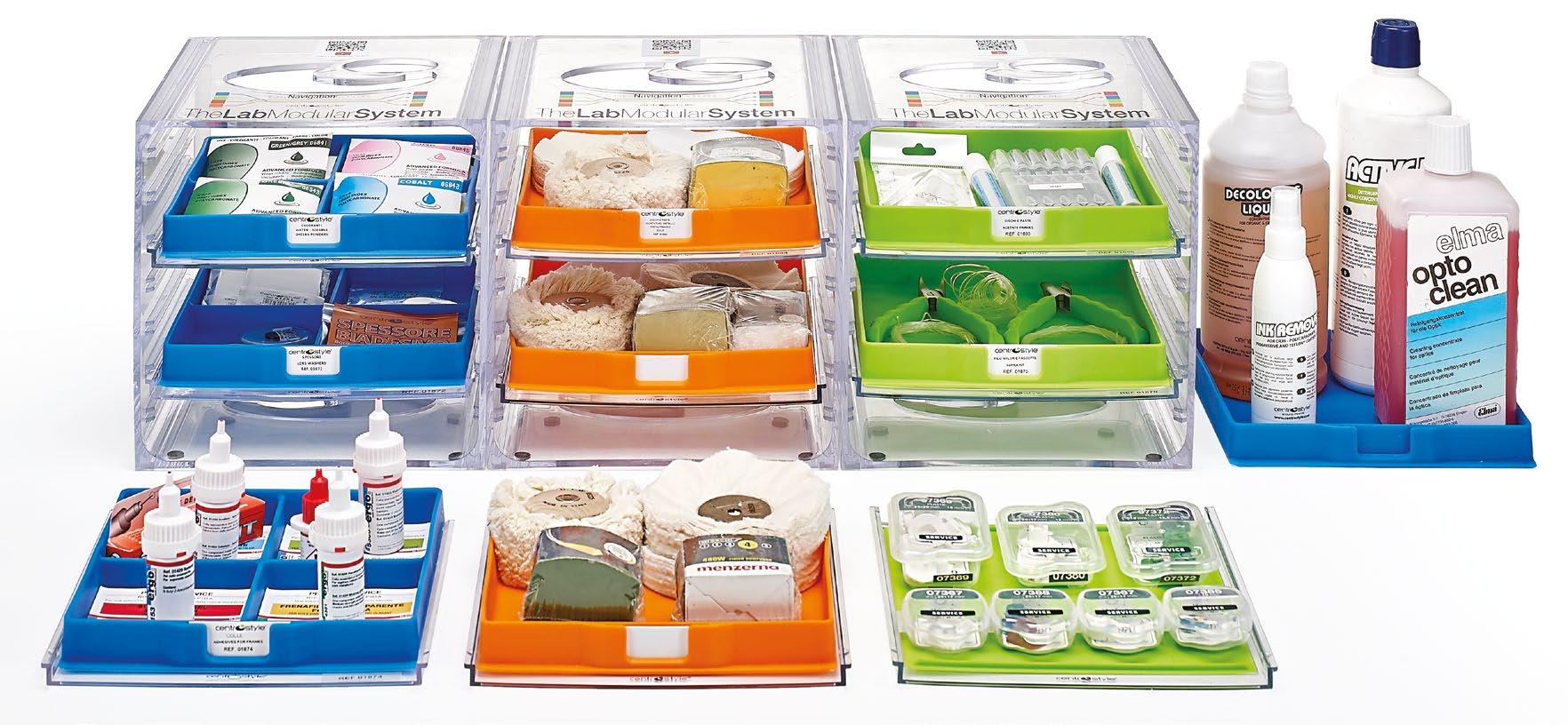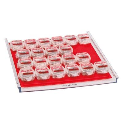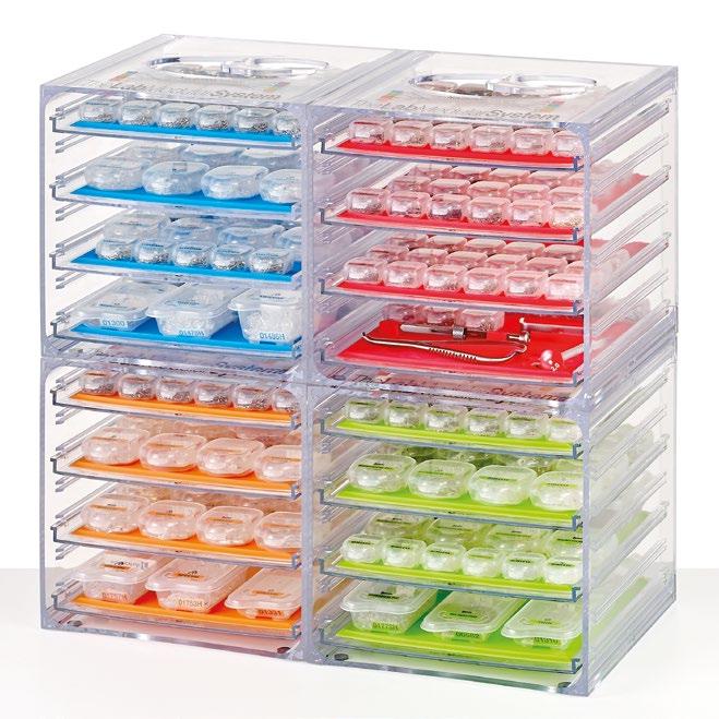 ORDINE E FUNZIONALITÀ = RISPARMIO DI TEMPO = RISPARMIO DI SPAZIO I componenti possono essere facilmente identificati dal colore dei vassoi