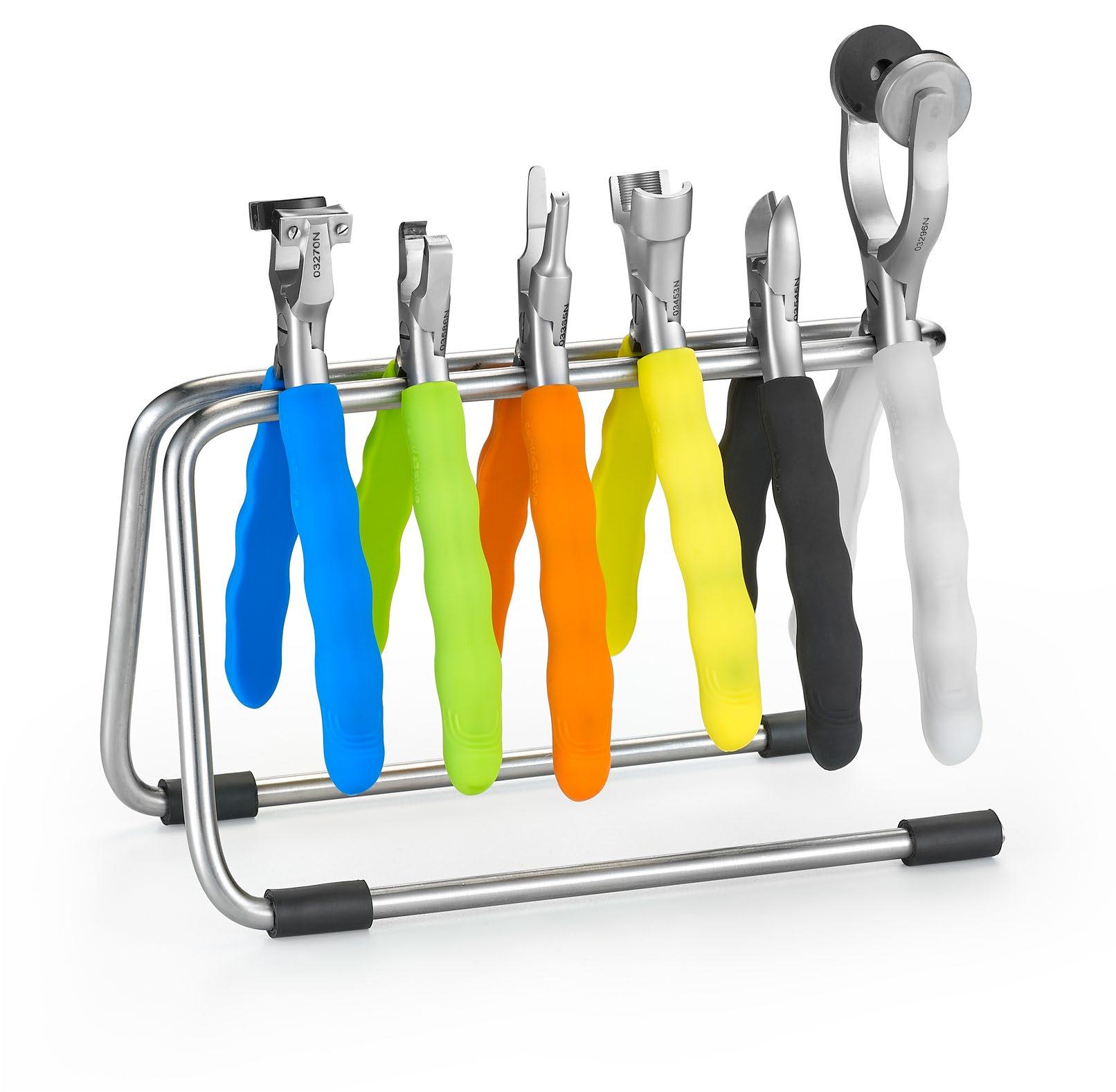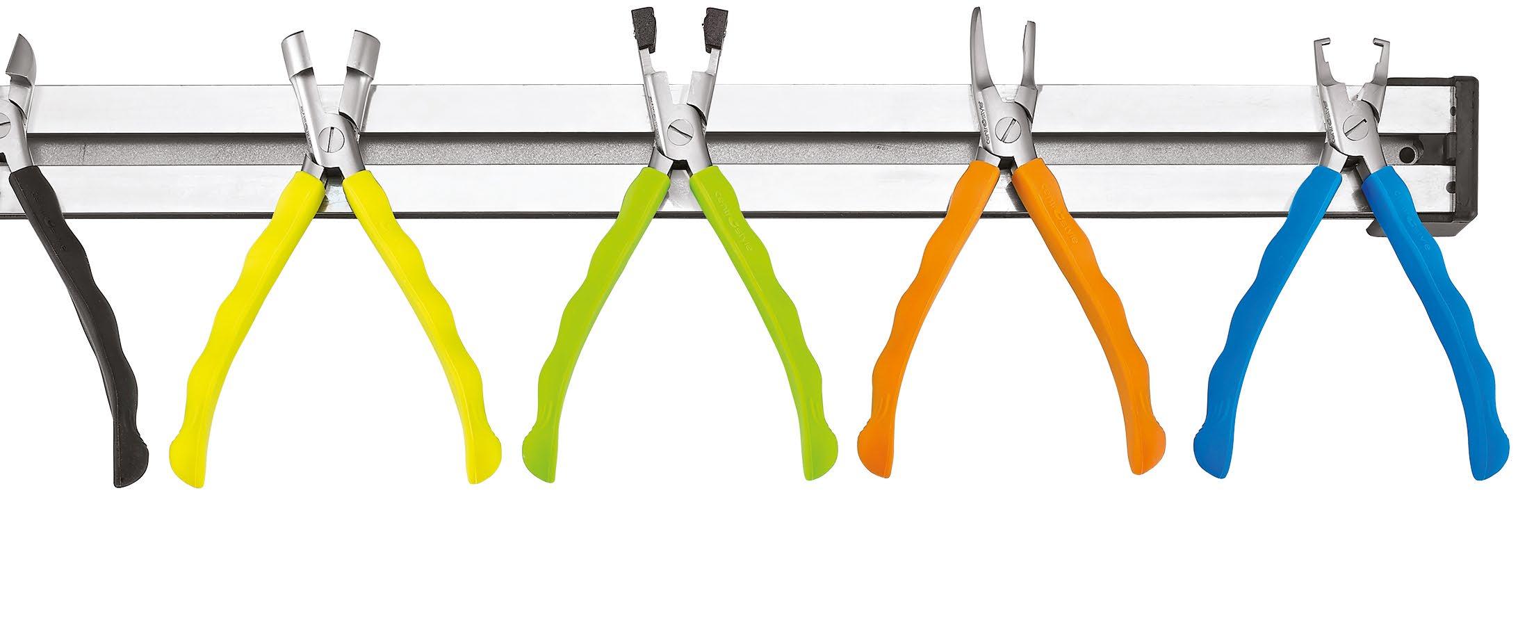 The pliers are part of TheLabModularSystem, a modular system based on colour to improve the organization of your laboratory and facilitate workflows. The system is based on the “Easy Navigation Concept”: once the operation to be performed has been identified, based on the eyewear to be repaired / adjusted / assembled, thanks to the colours of the system you can easily find what is necessary to carry it out with speed and precision. Each plier family has a specific handle colour based on the type of eyewear, the material with which it is made and the operation to be performed.