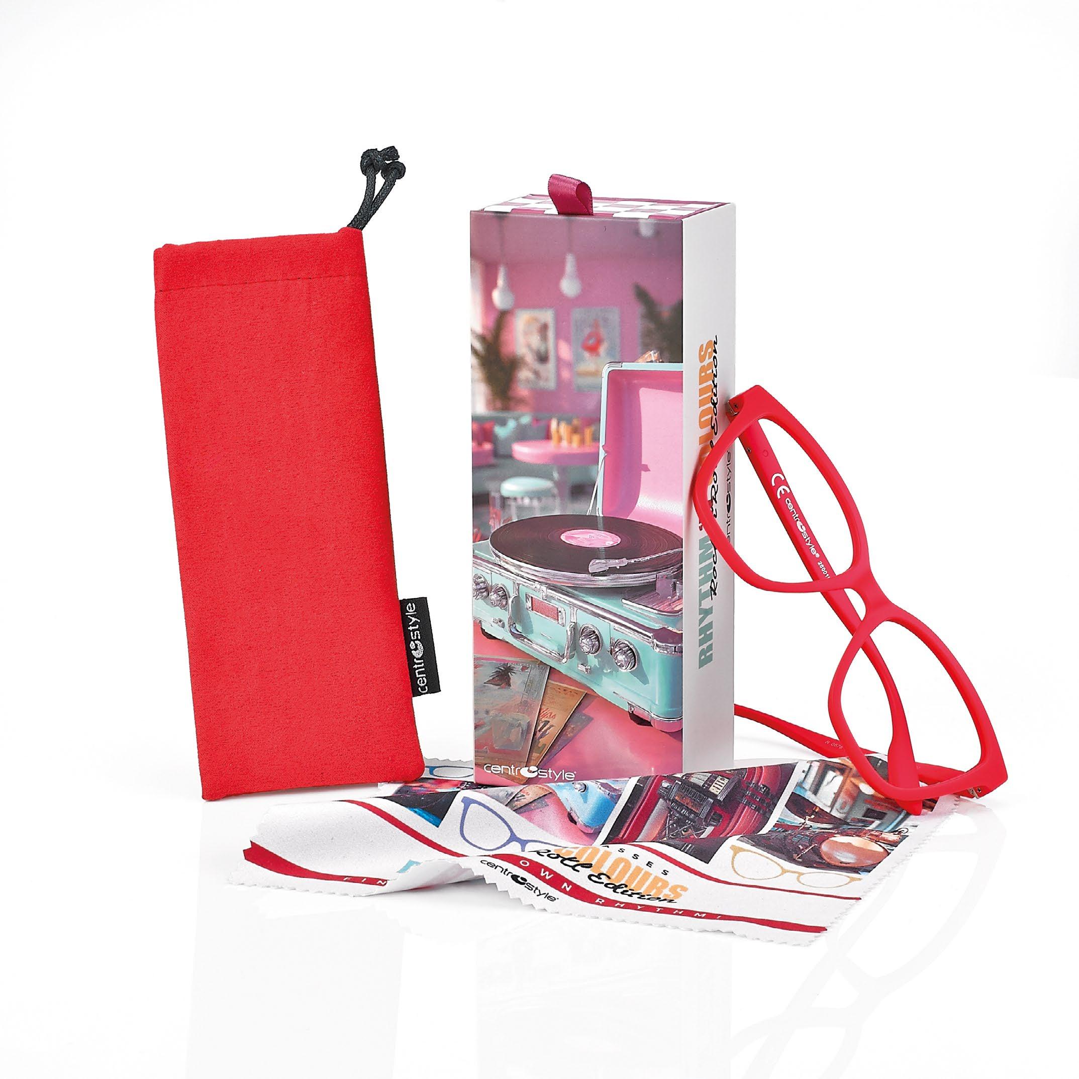 Reading glasses made of lightweight material (polycarbonate). Blue light filter lenses provide greater reading comfort when using digital devices. The Spotify playlist dedicated to the collection is available on the packaging.