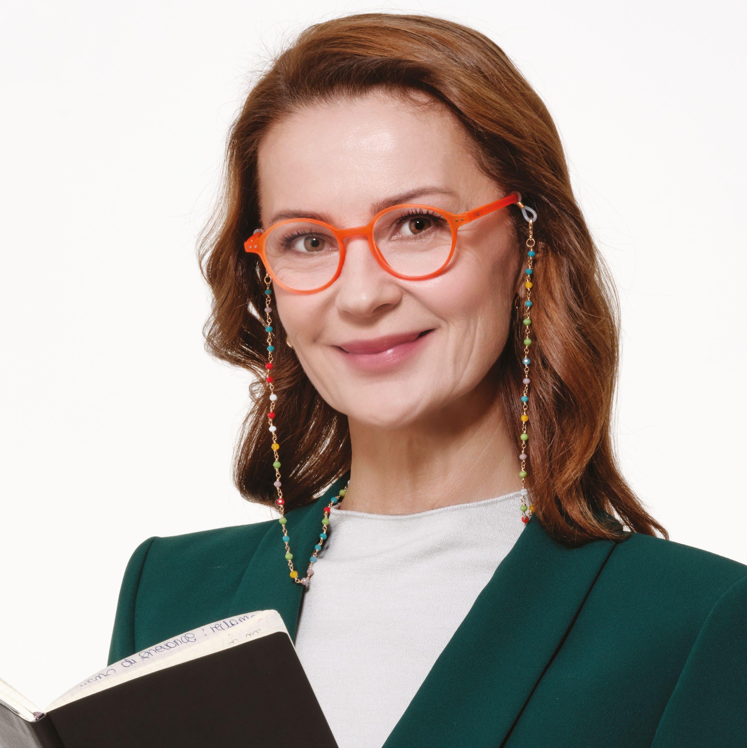 Reading glasses for women made of lightweight material (polycarbonate). Blue light filter lenses provide greater reading comfort when using digital devices. The Spotify playlist dedicated to the collection is available on the packaging.