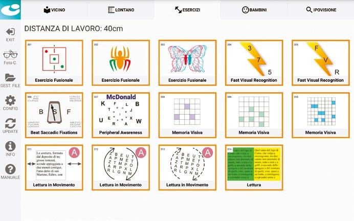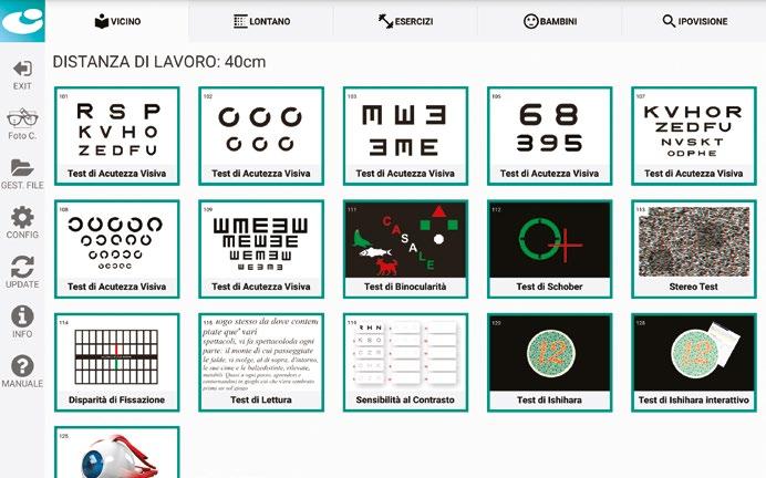 Un sistema digitale che garantisce la gestione dei controlli della visione e del potenziamento visivo. Unico in Italia per numero di test e integrabile ad altre metodologie optometriche con aggiornamenti automatici dei test grazie a due applicazioni certificate e al software certificato come DM classe 1.