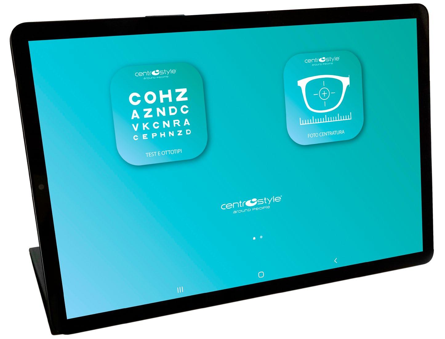Digital Vision Care Tablet completo di applicazioni e custodia per il supporto.