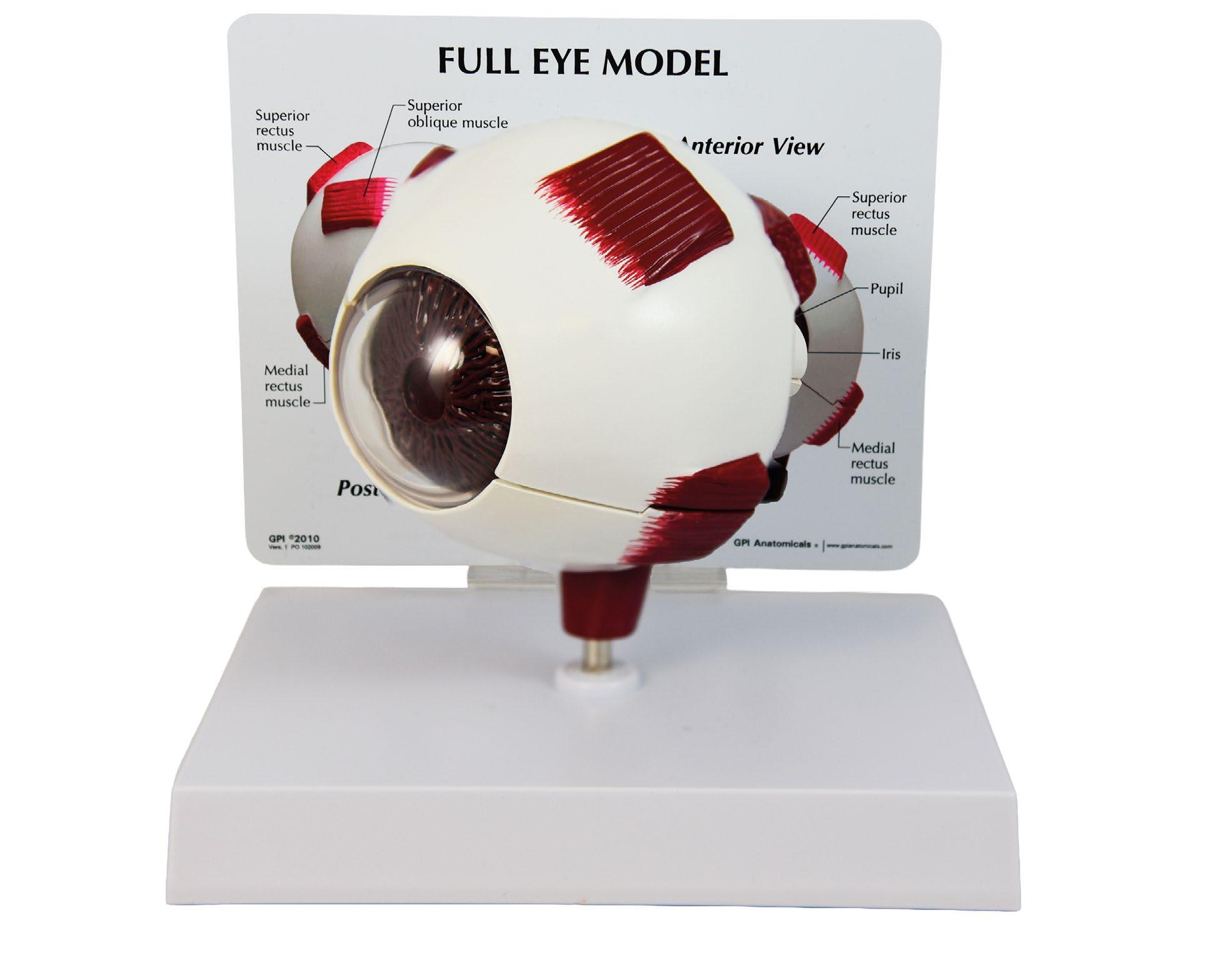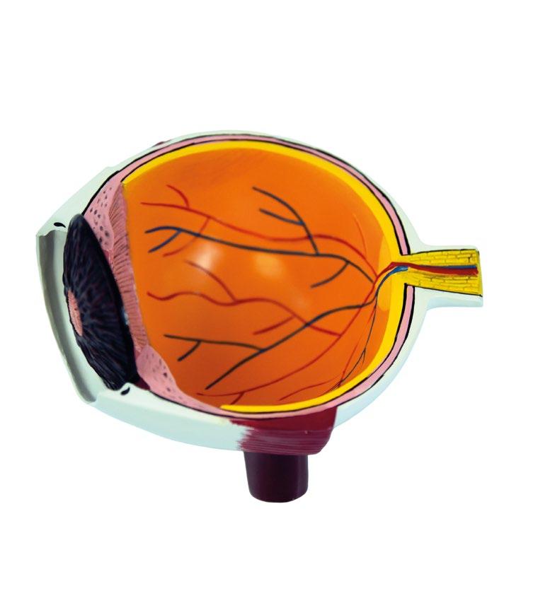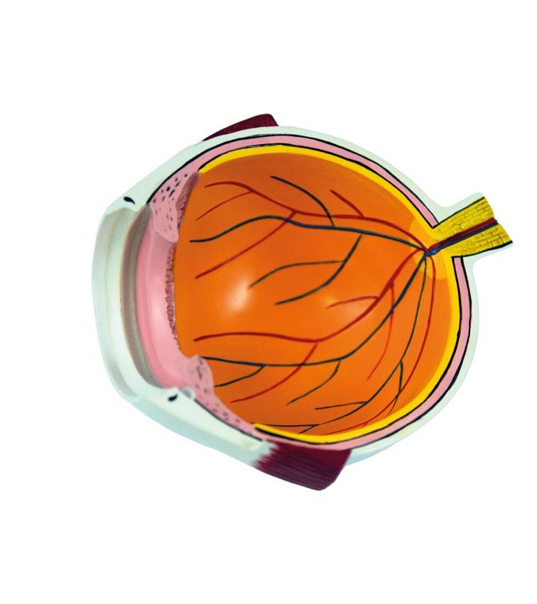 ll modello illustra dettagliatamente l’anatomia interna, inclusi il nervo ottico, il disco, la macula, la retina, l’arteria retinica centrale e la vena. Il cristallino e la cornea sono rimovibili