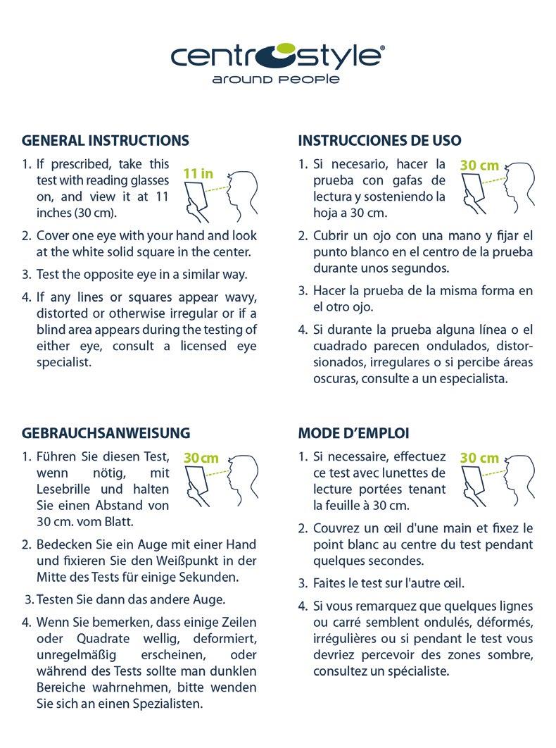 Al soggetto viene chiesto di descrivere cosa vede, se le linee si distorcono o spariscono, mentre la fissazione rimane stabile sul punto centrale. Il test deve essere eseguito senza indossare lenti bifocali o multifocali, occludendo un occhio alla volta e con un’illuminazione ambientale “naturale”.