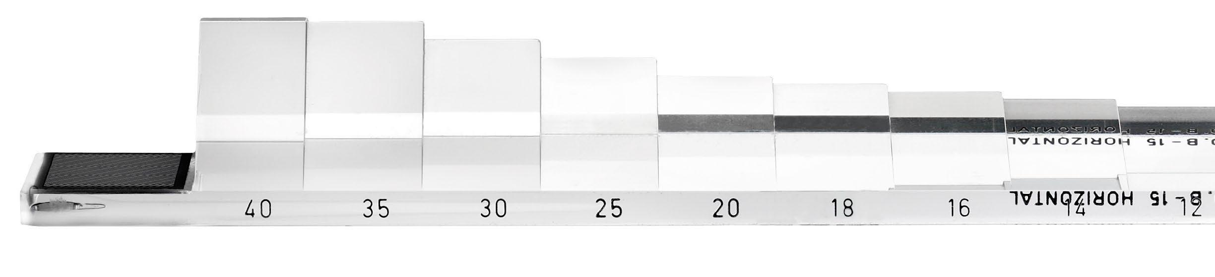 • Progressione righe in LOG MAR, decimali, metri, piedi.