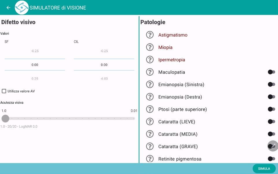 Utilizzo ad 1 mt di distanza con illuminazione di 85cd/m² (illuminazione standard esame opto- metrico).