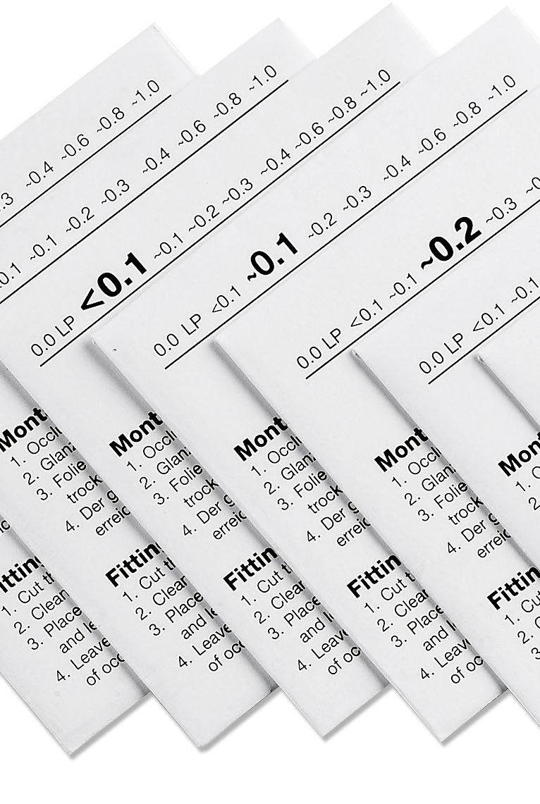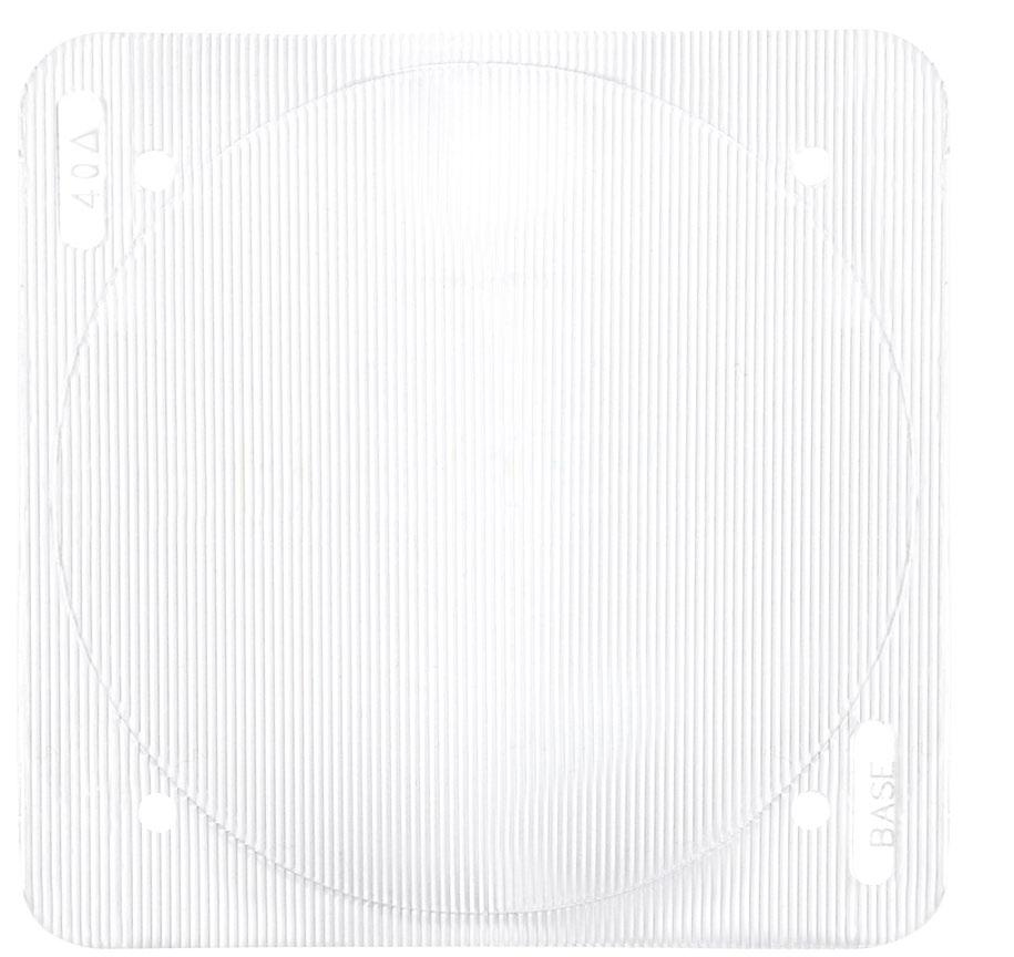 Vantaggi del Press-On Lente: practical, lightweight, widerange of powers. Thin and flexible and easy to fix to existing lenses - held by static adhesion, easily removed. Low cost and low risk treatment during power changes and vision therapy.