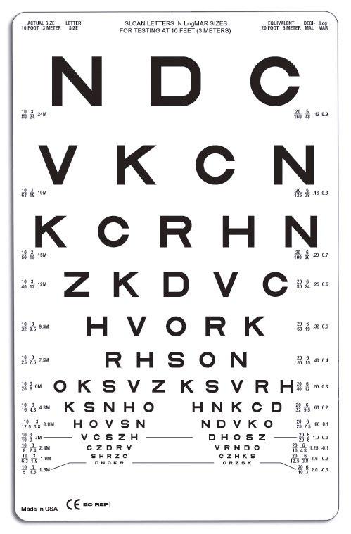 - Near vision test card with rod