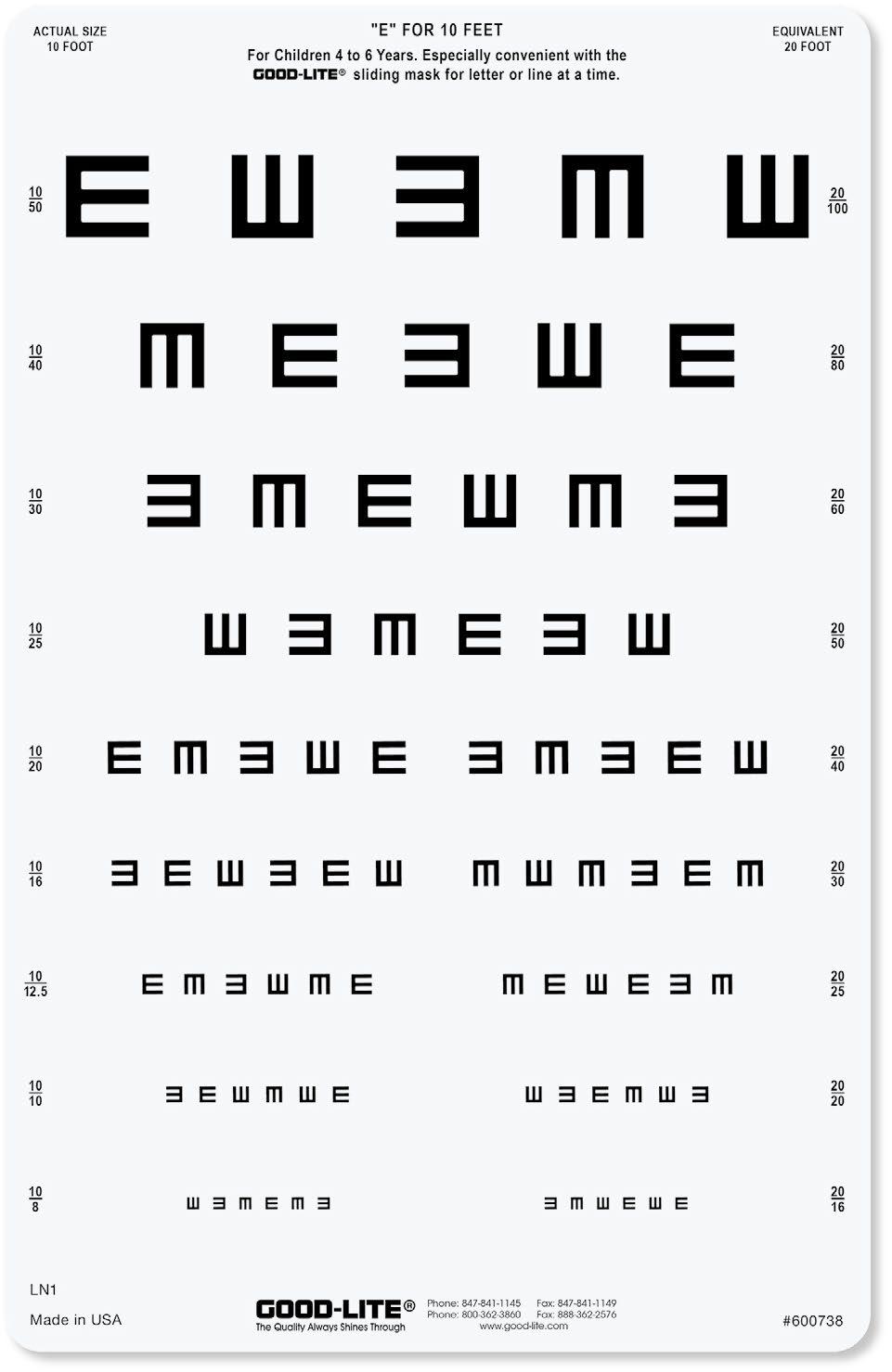 • “E” letters specific for examinations on children from 4 to 6 years old.