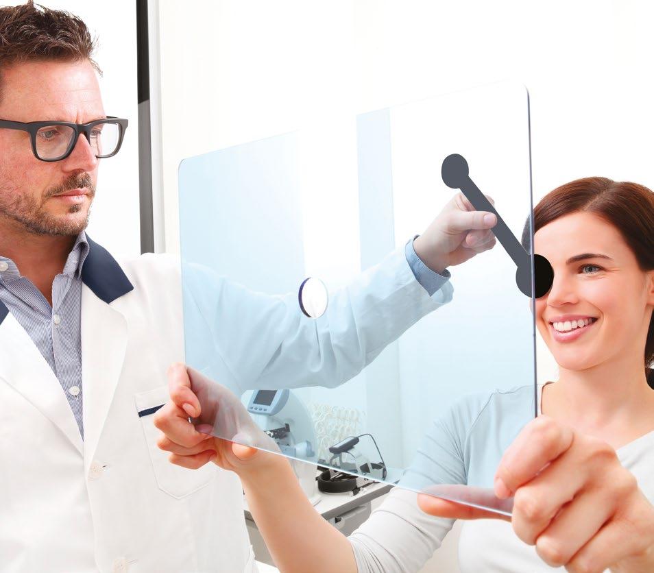 The pictures show how the image is moved by the prism to accommodate the different direction of the patient’s line of sight. The image is moved in the opposite direction to the base.