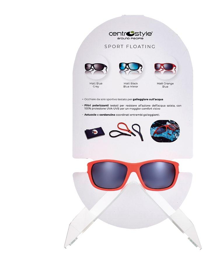 Occhiale da sole dallo stile sportivo, che può galleggiare sull’acqua. I filtri polarizzati, oltre ad attenuare i riflessi dell’acqua e a garantire il massimo della protezione dai raggi UVA e UVB, sono più resistenti all’azione dell’acqua salata.