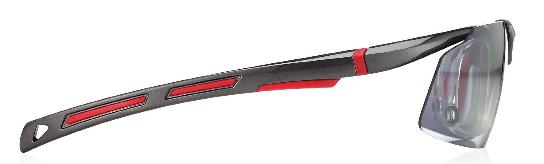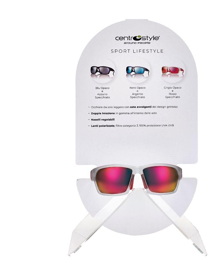 • Occhiale da sole leggero, in TR90 con aste avvolgenti e doppia iniezione in gomma.