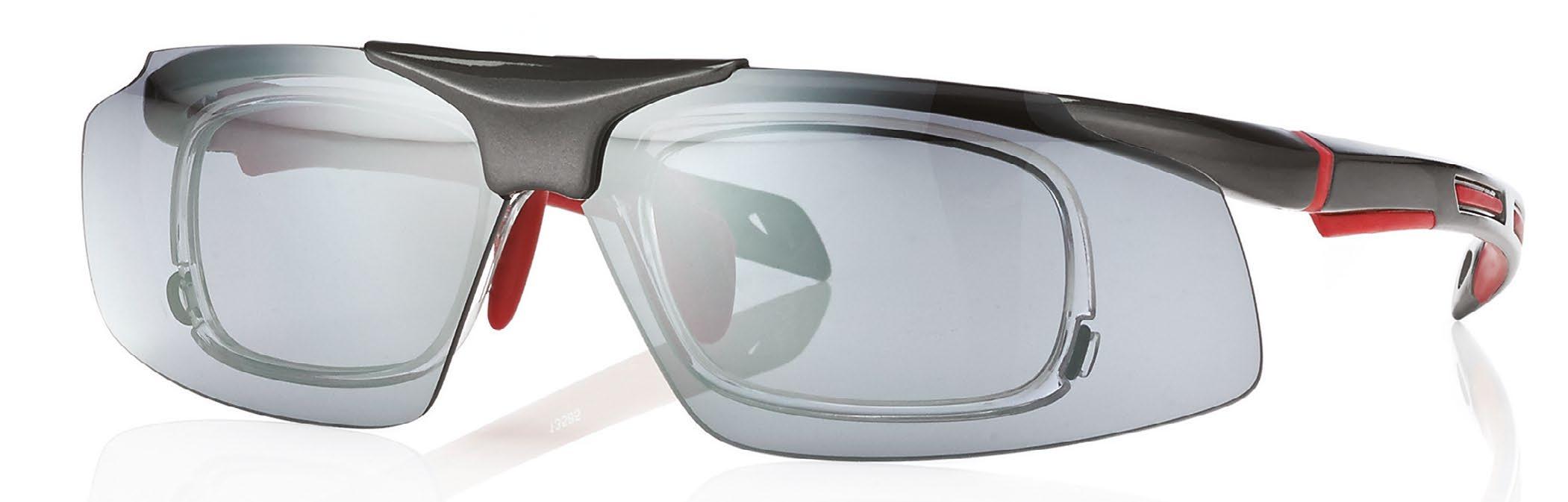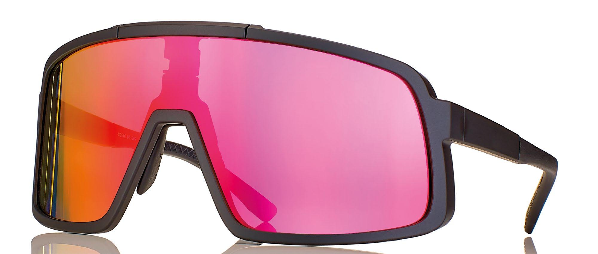 • Occhiale da sole a mascherina, in TR90 con sistema di sgancio sul frontale per cambio lente.