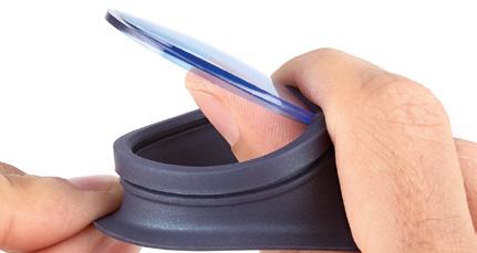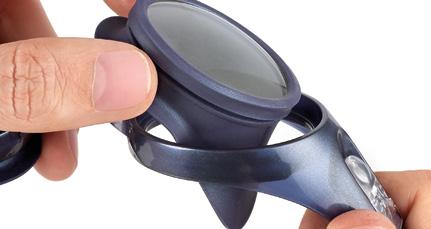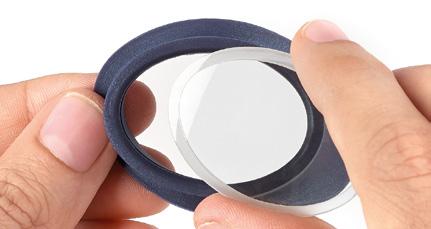 3. Calzare la guarnizione intorno allāoculare: prima nella parte superiore e poi in quella inferiore. FACILE DA MONTARE