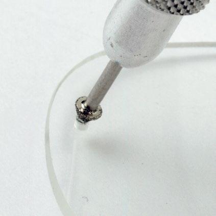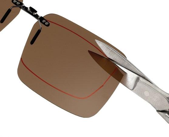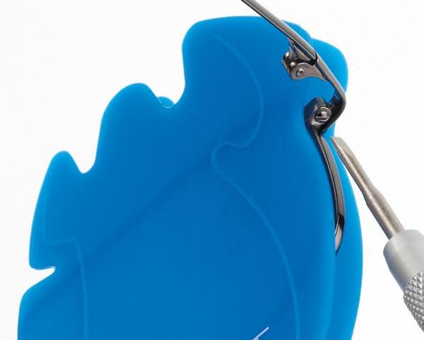 • Slim shape in front area allows more precision in use, especially for rimless assemblies