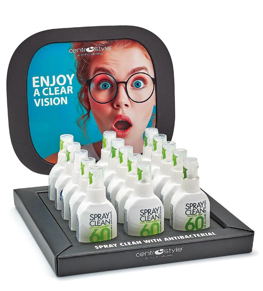 Un’esposizione dinamica per essere liberi di creare il proprio corner dedicato ai prodotti per la cura e la pulizia degli occhiali.