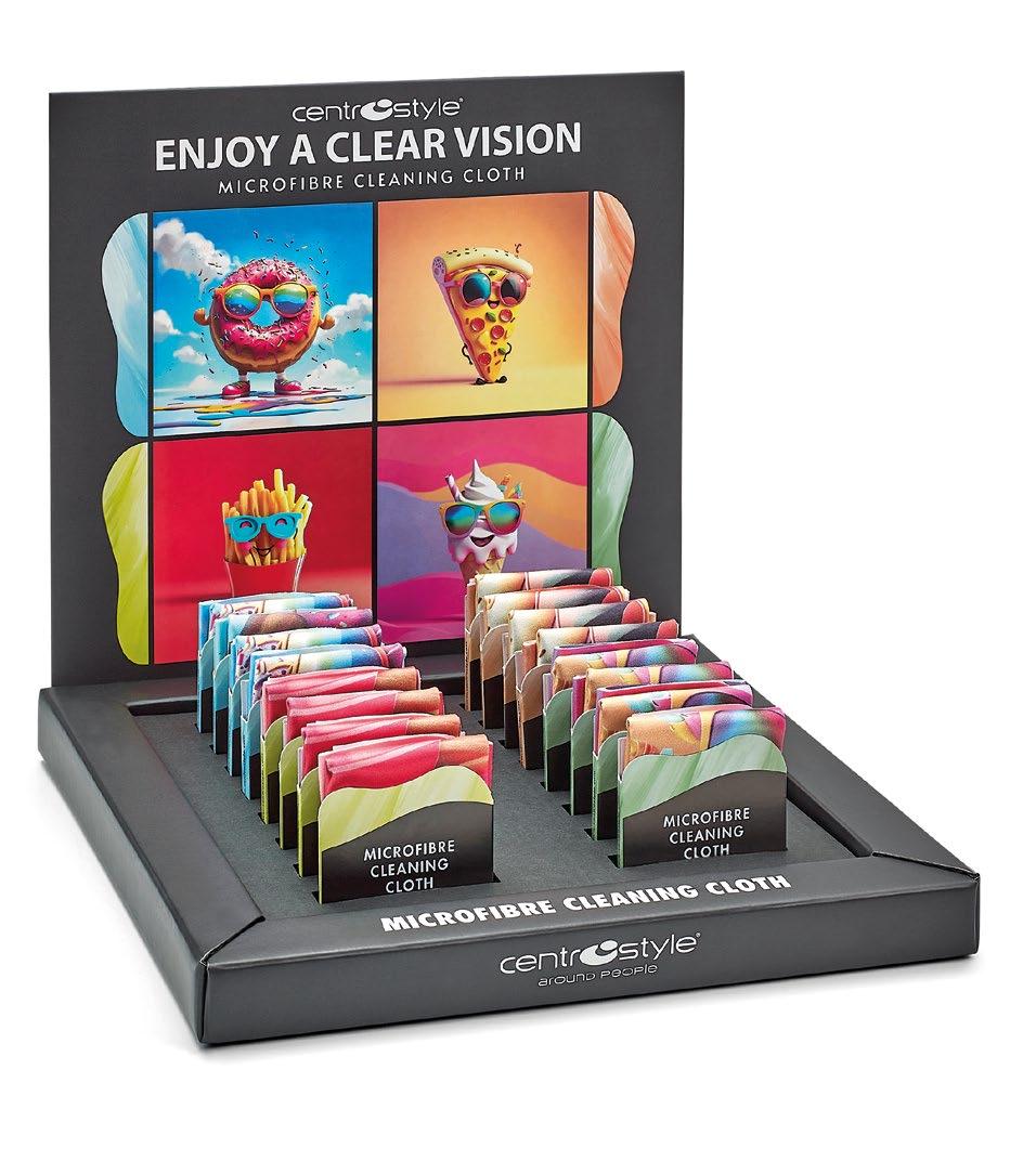 Per far scegliere al tuo cliente la microfibra con l’immagine che preferisce per prendersi cura del proprio occhiale.