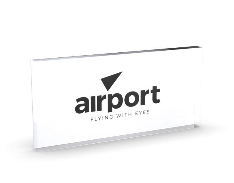 Supporto durevole in plexiglass con comunicazione intercambiabile su cartoncino riciclabile.