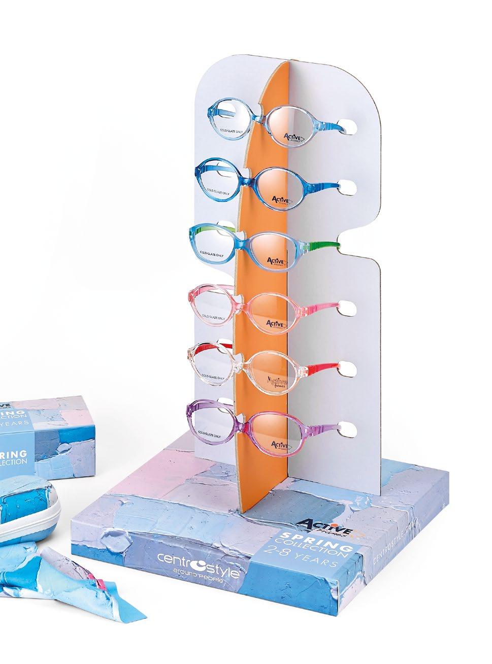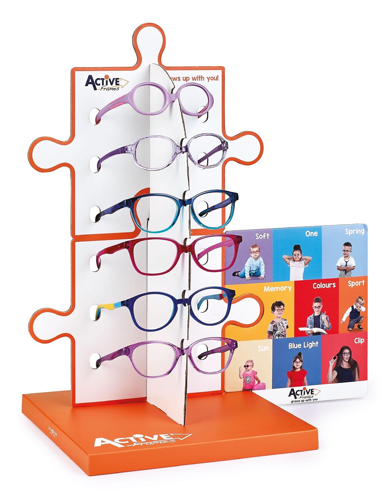 Displays for the presentation of Active Frames both suitable for the counter and the shop window.