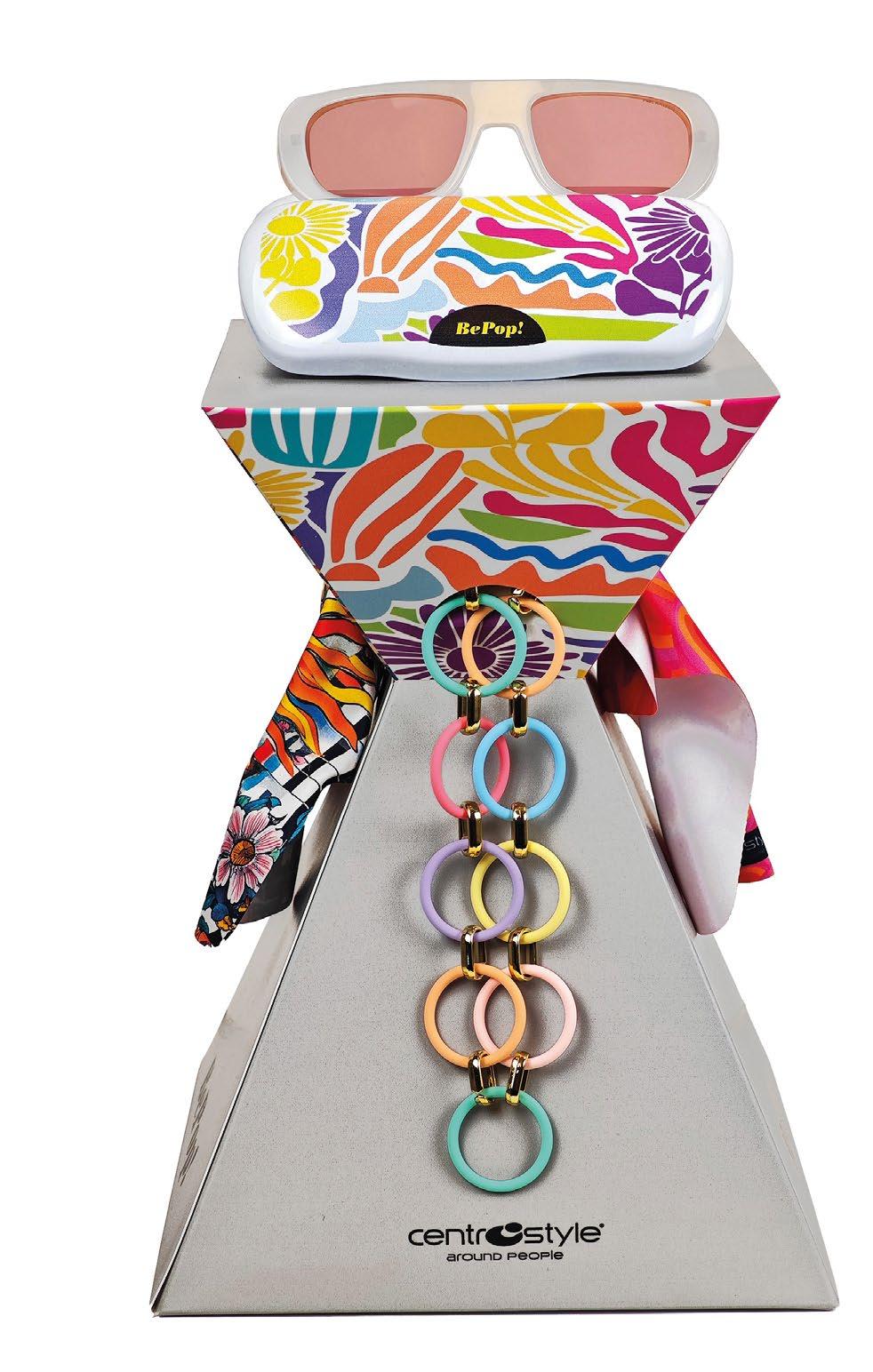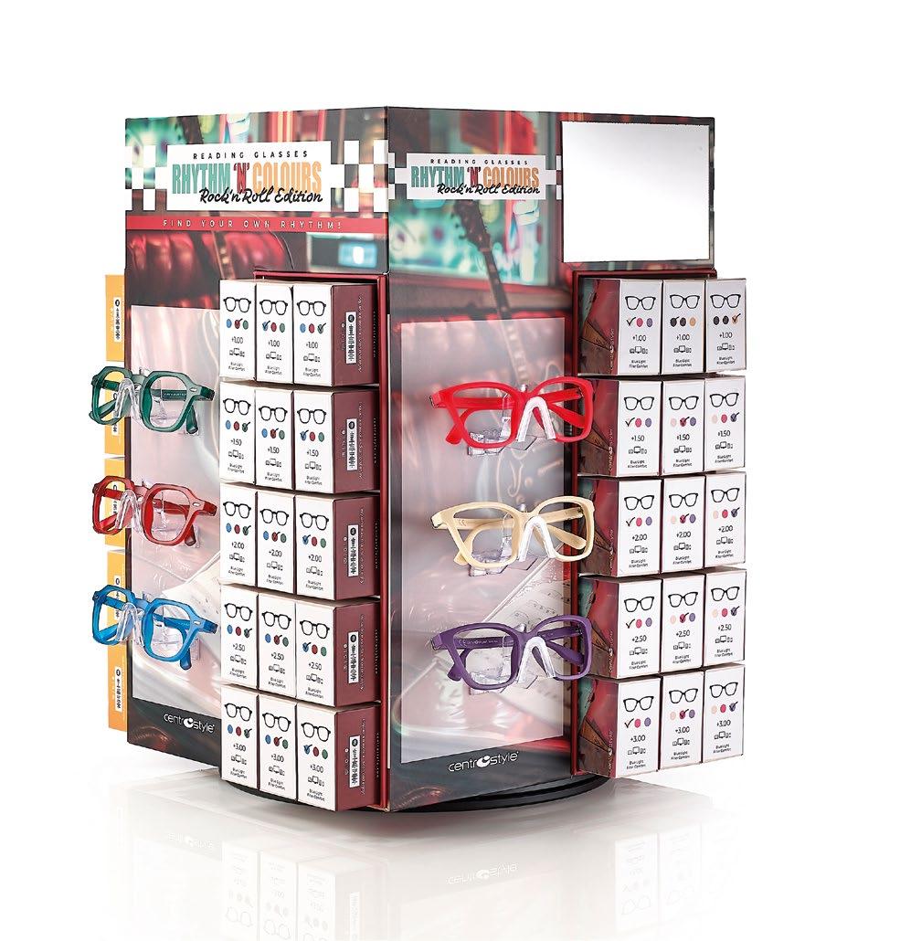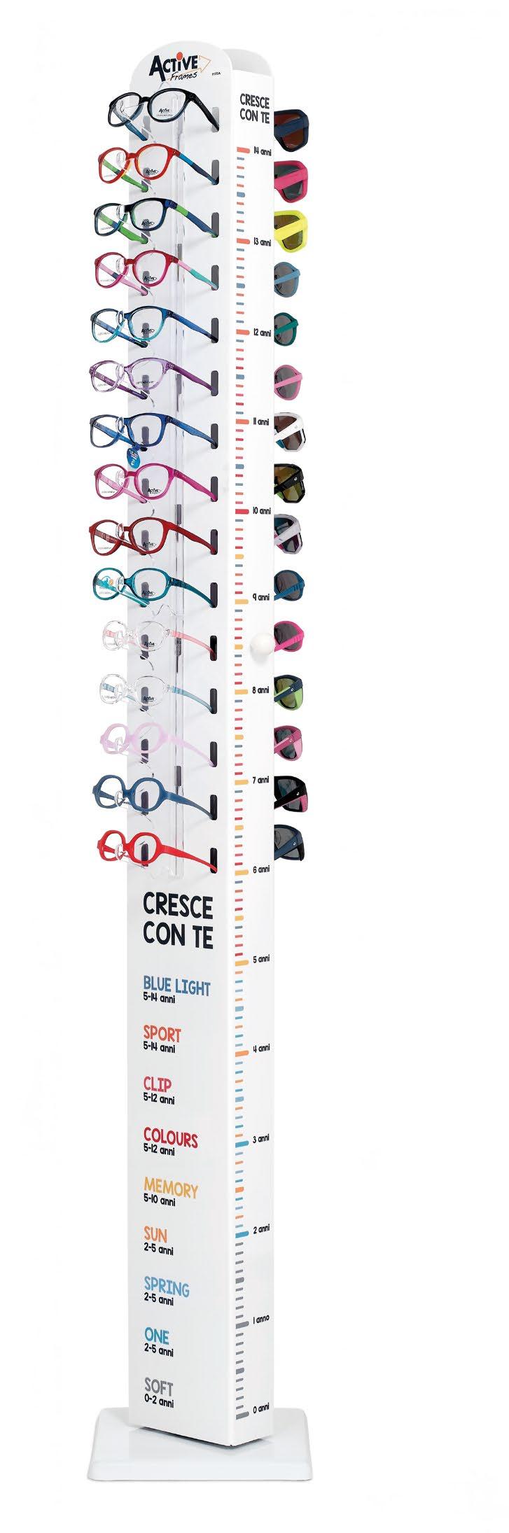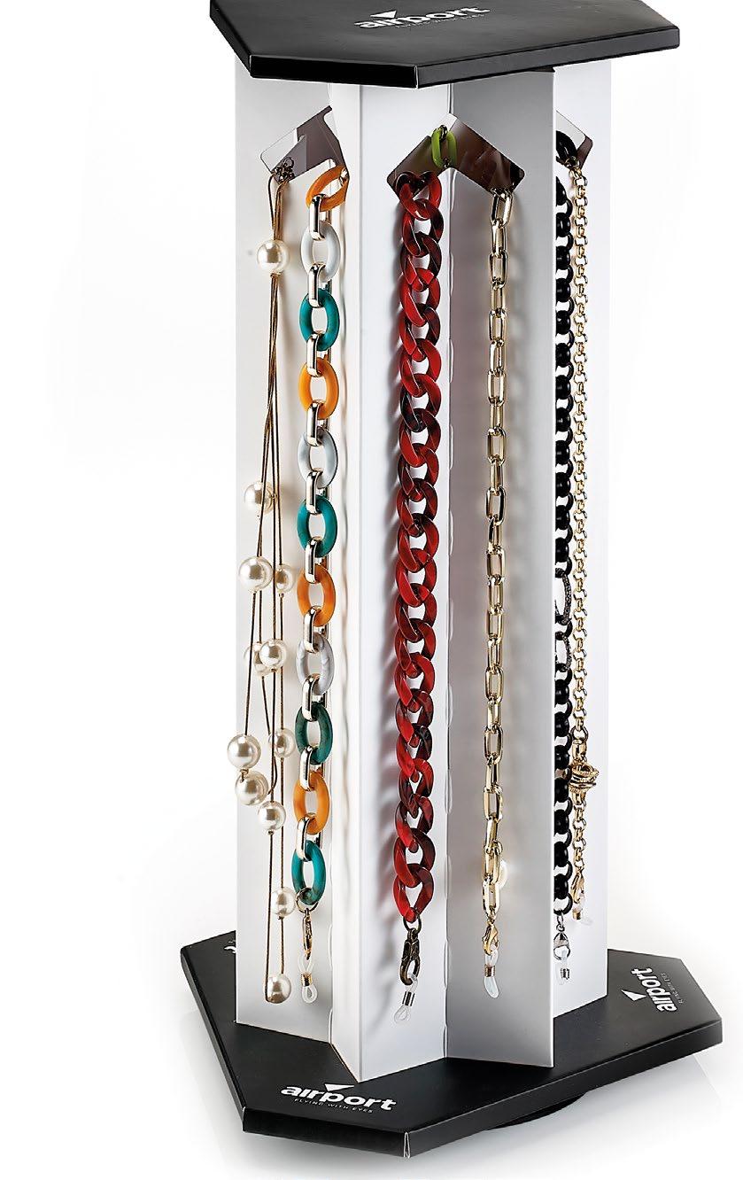 A display system for chains ideal for shop windows and inside the store. Suitable for giving visibility to eyewear solutions always at hand.