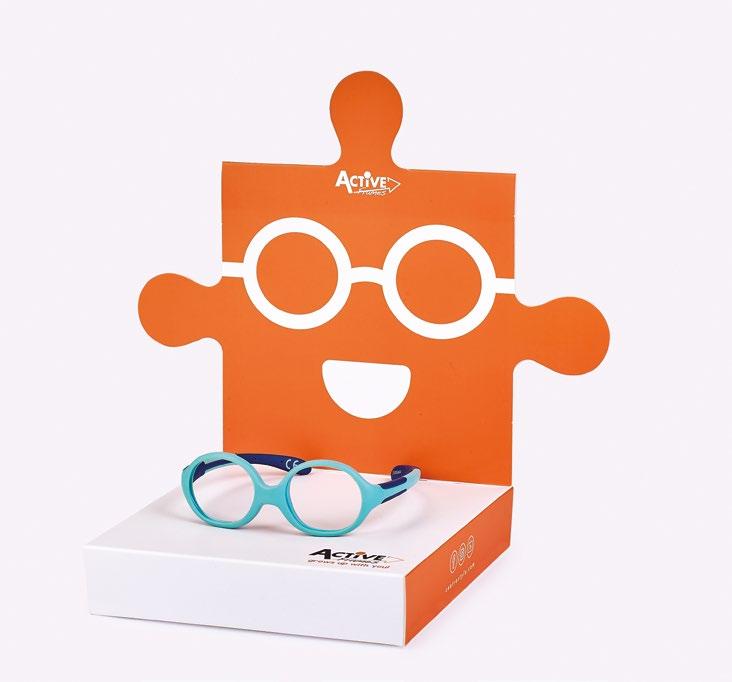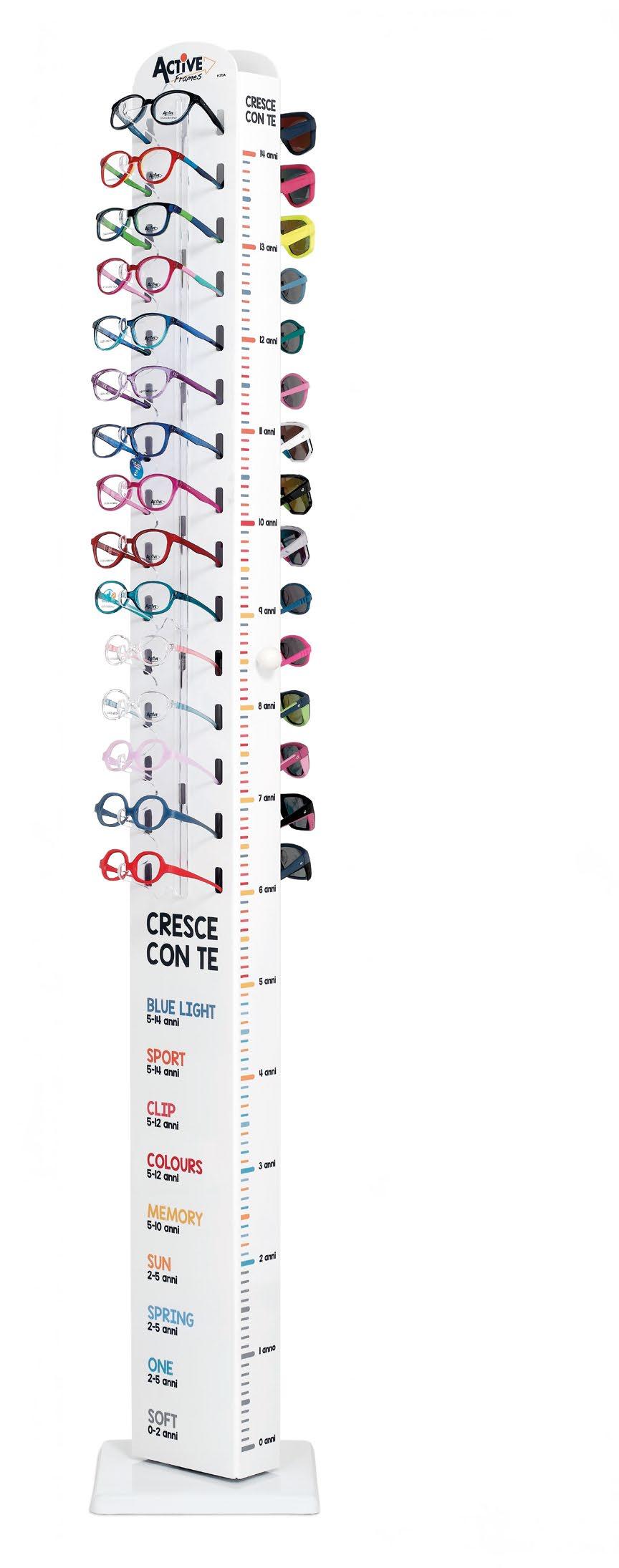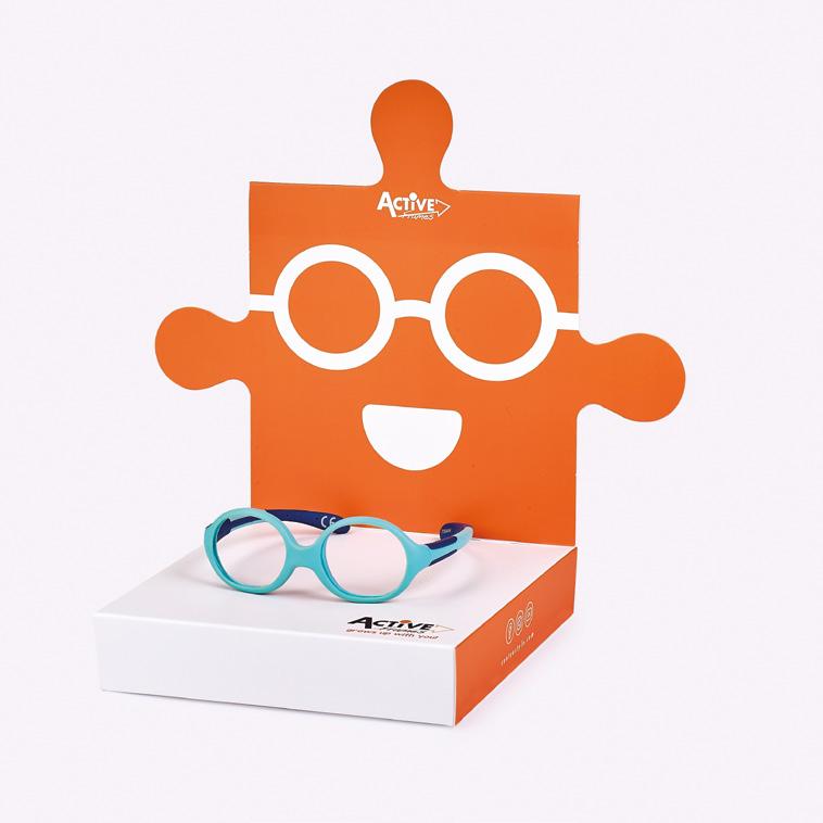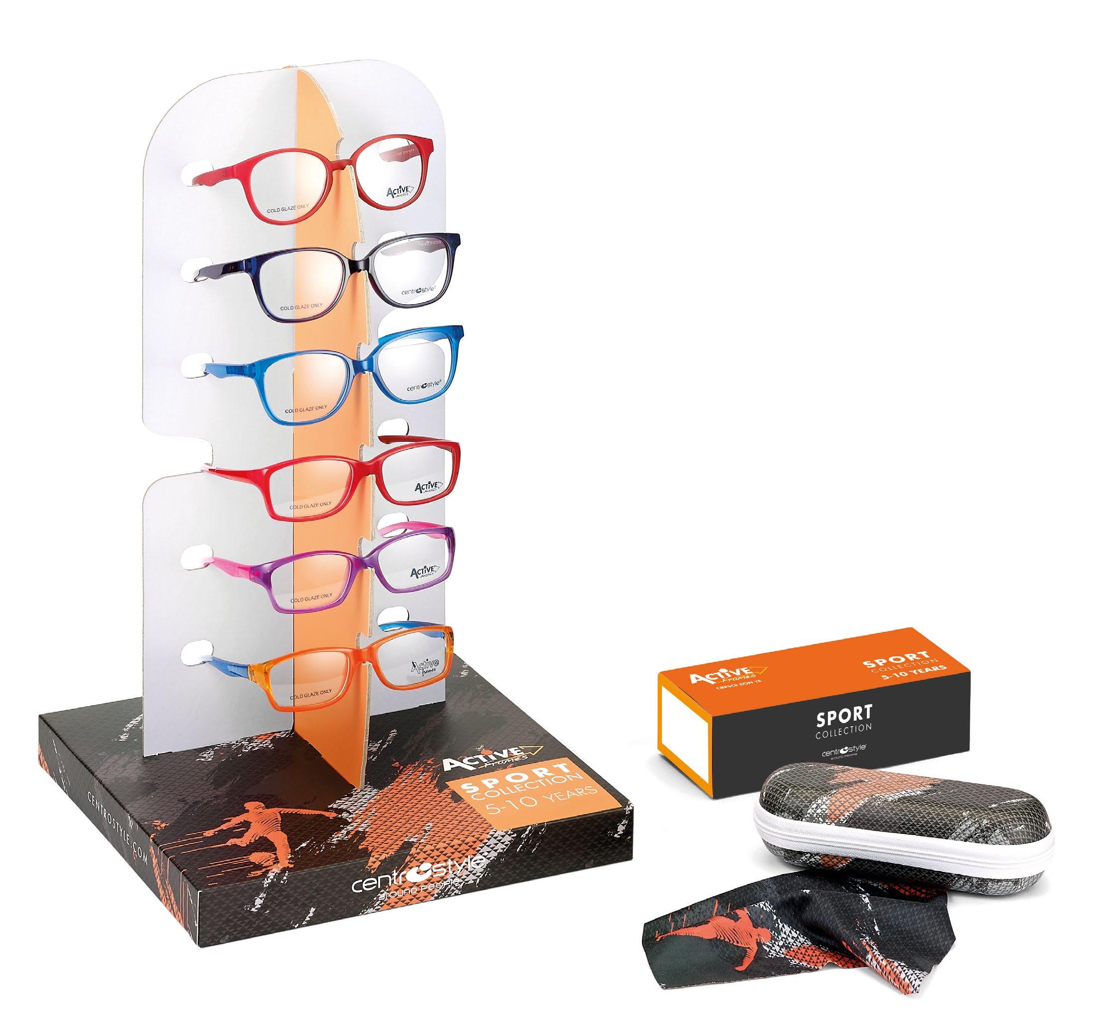 Espositori per la presentazione di montature Active, adatti sia per l’esposizione da banco che per la vetrina