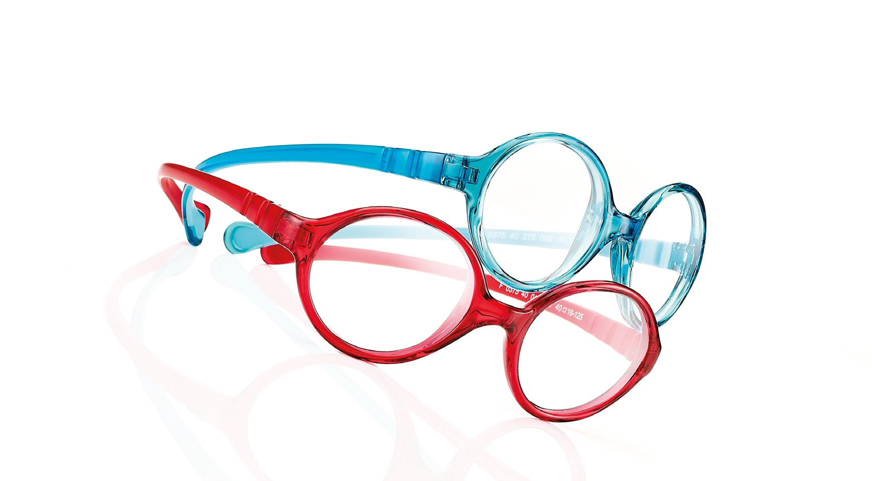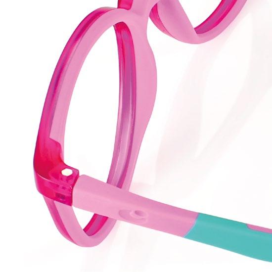 La collezione comprende 5 forme in 6 colorazioni proposte dal calibro 34 al 41 . Si tratta di montature monoblocco in materiale morbido, ultraflessibile, con ponte anatomico centrale studiato per i più piccoli. Le aste sono dotate di un aggancio sul terminale dove viene abbinato un cordoncino elastico regolabile che ne permette il corretto mantenimento del centro ottico.