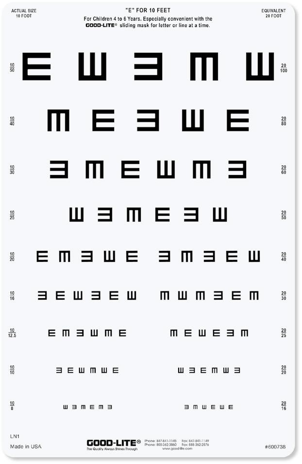 Montatura monoblocco in morbida gomma, senza lattice e priva di parti in metallo con ponte centrale anatomico, per offrire ai più piccoli il massimo comfort durante l’esame dell’acuità visiva.