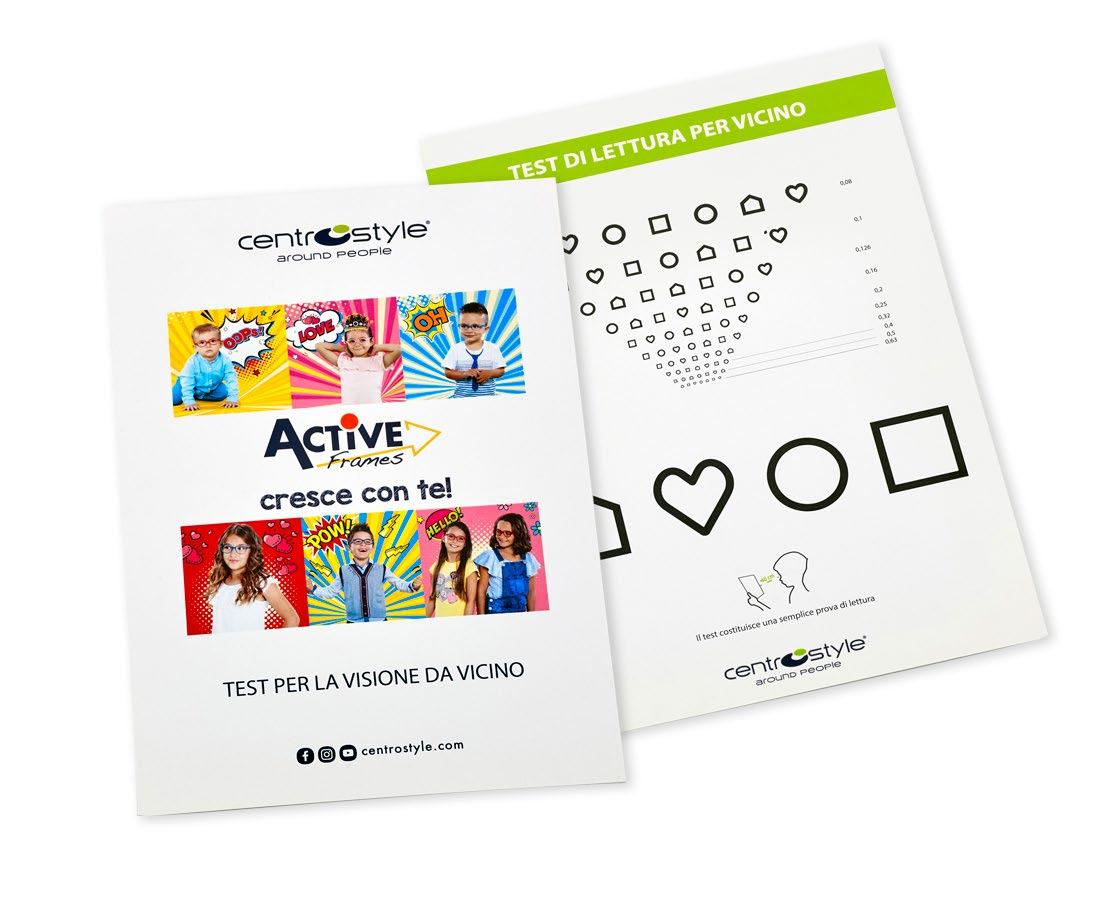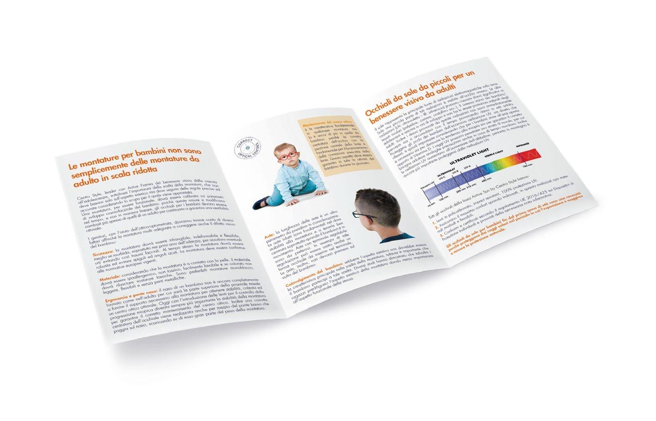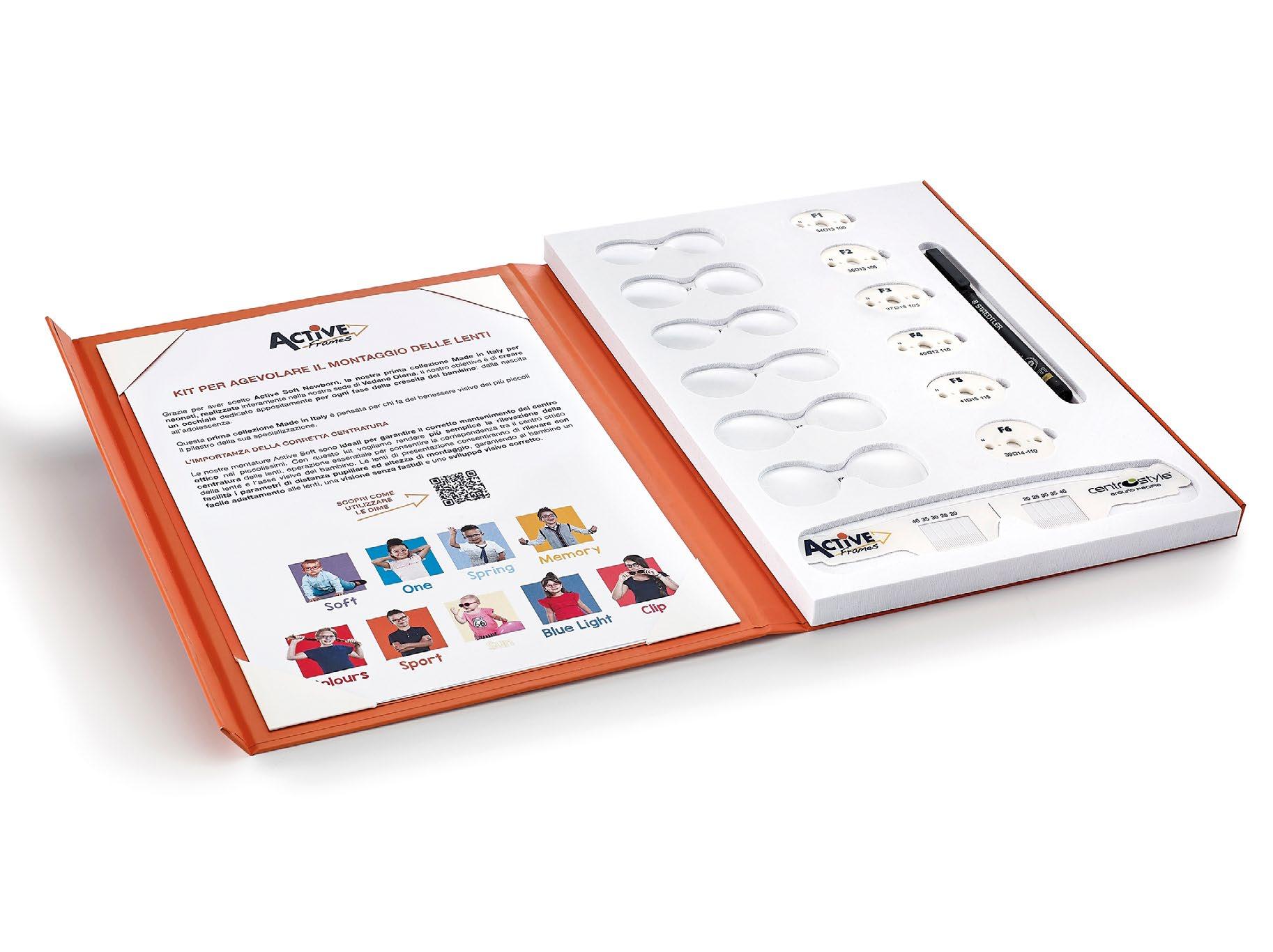In omaggio con l’acquisto di 10 montature a scelta. Comprensiva di comunicazione riguardante i punti di forza comuni a tutte le collezioni. Dotata di uno spazio dedicato alle collezioni per la prima infanzia (Active Soft e One).