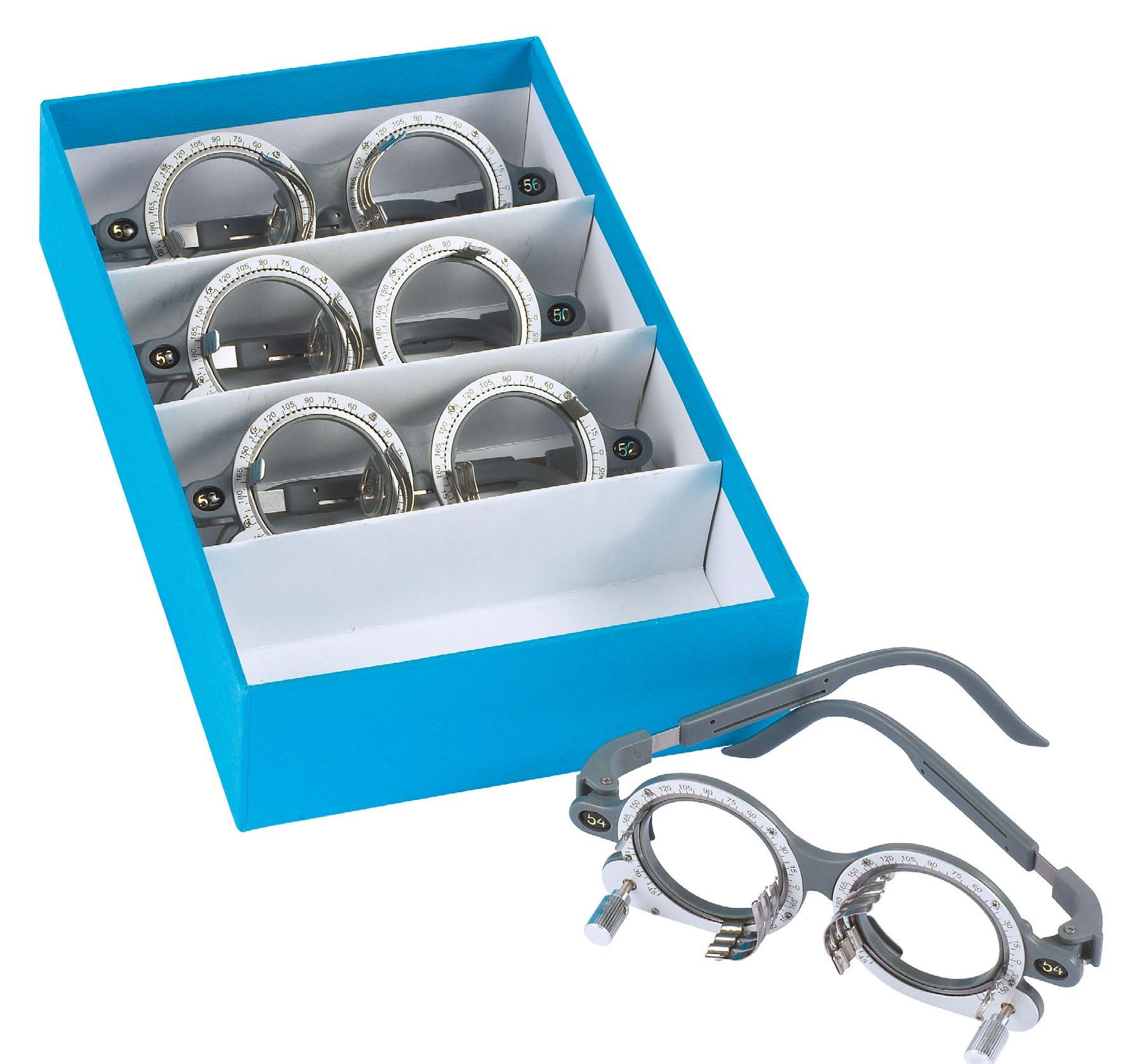 Couvette contenente 4 occhialini di prova con PD fissa di 50-52-54-56 mm.