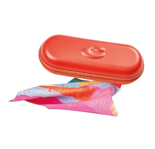 Astuccio semirigido con microfibra e cordoncino elastico regolabile in dotazione con ogni occhiale.