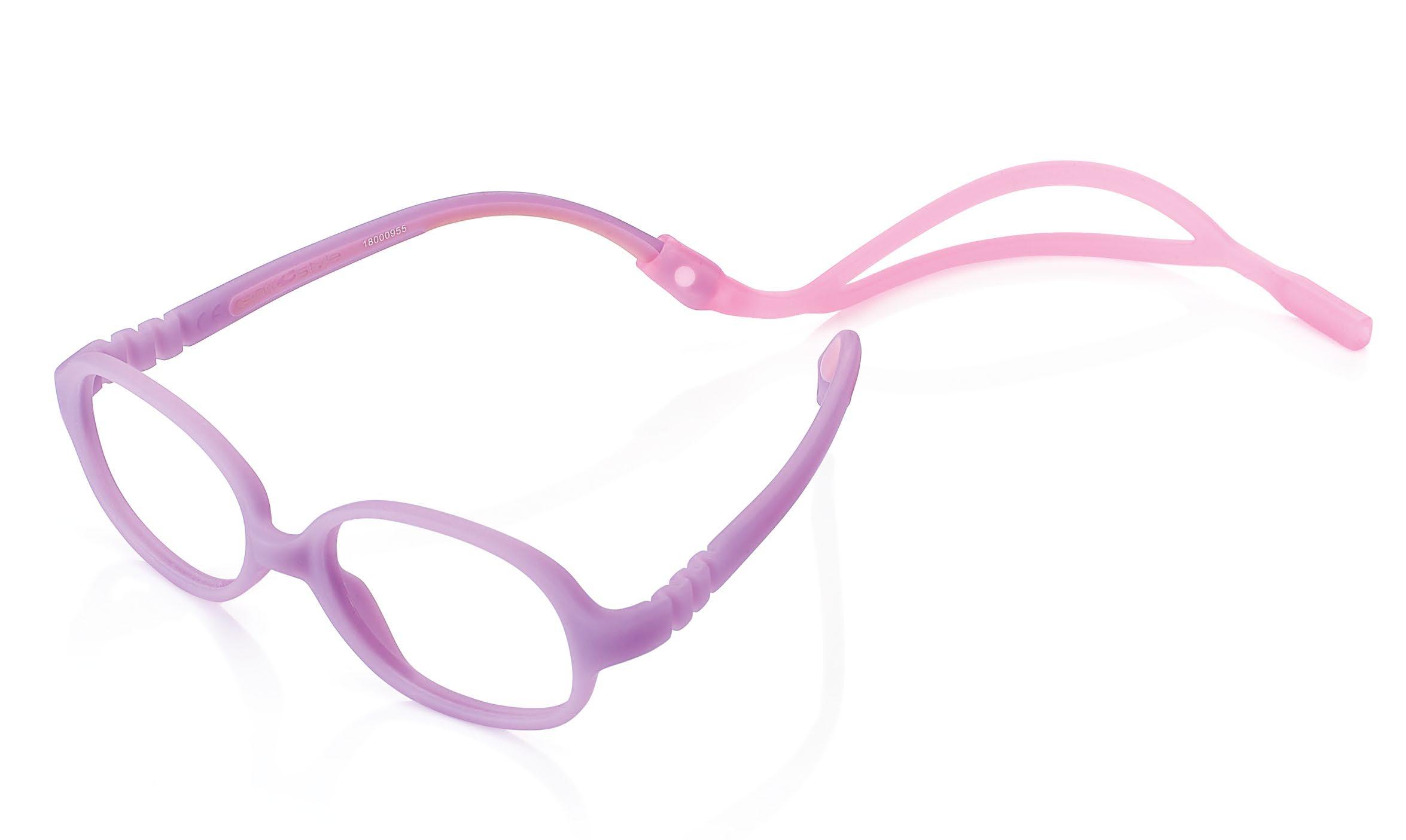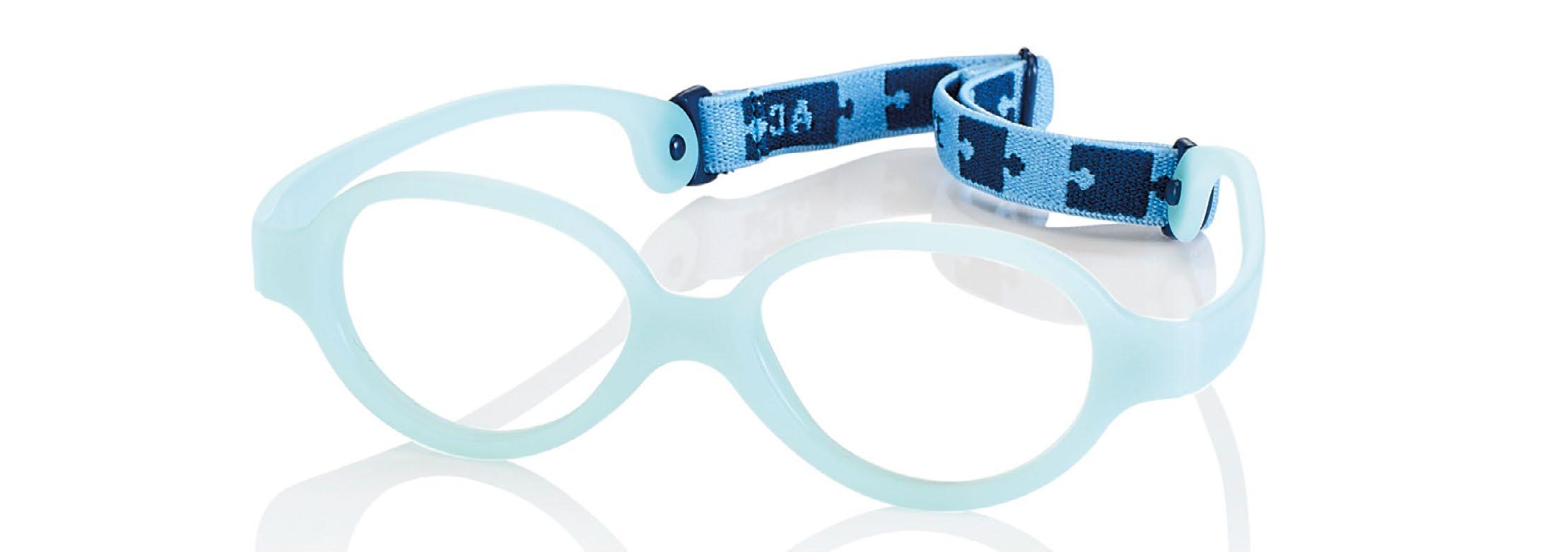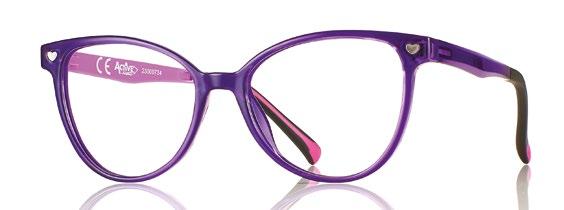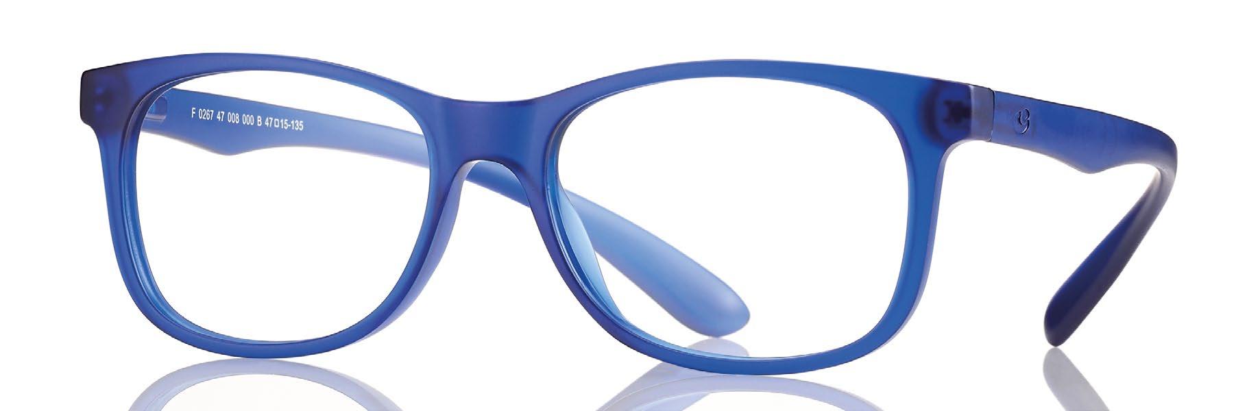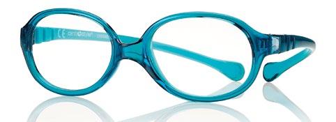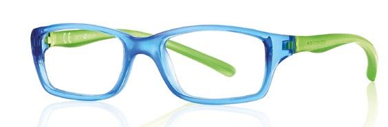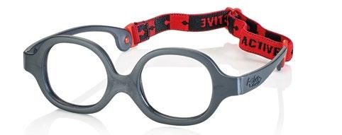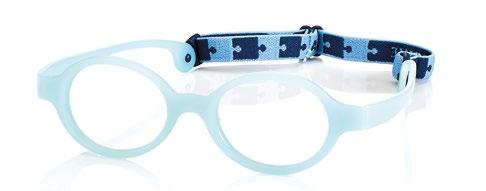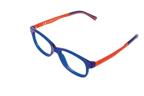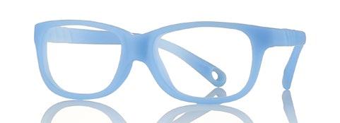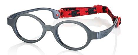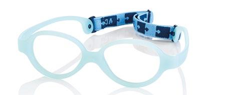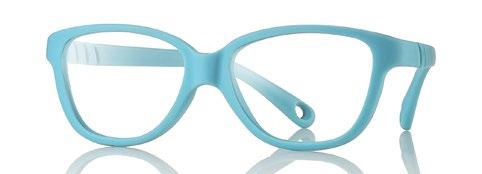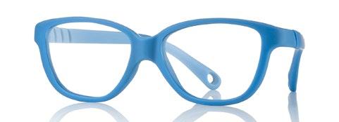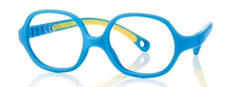 The collection includes 5 styles in 6 colours, available from size 34 to 41. These are one-piece frames made of soft, ultra-flexible material with a central anatomical bridge designed for the little ones. The temples are fitted with an adjustable rubber band at the end of the temple to maintain the correct optical centre.