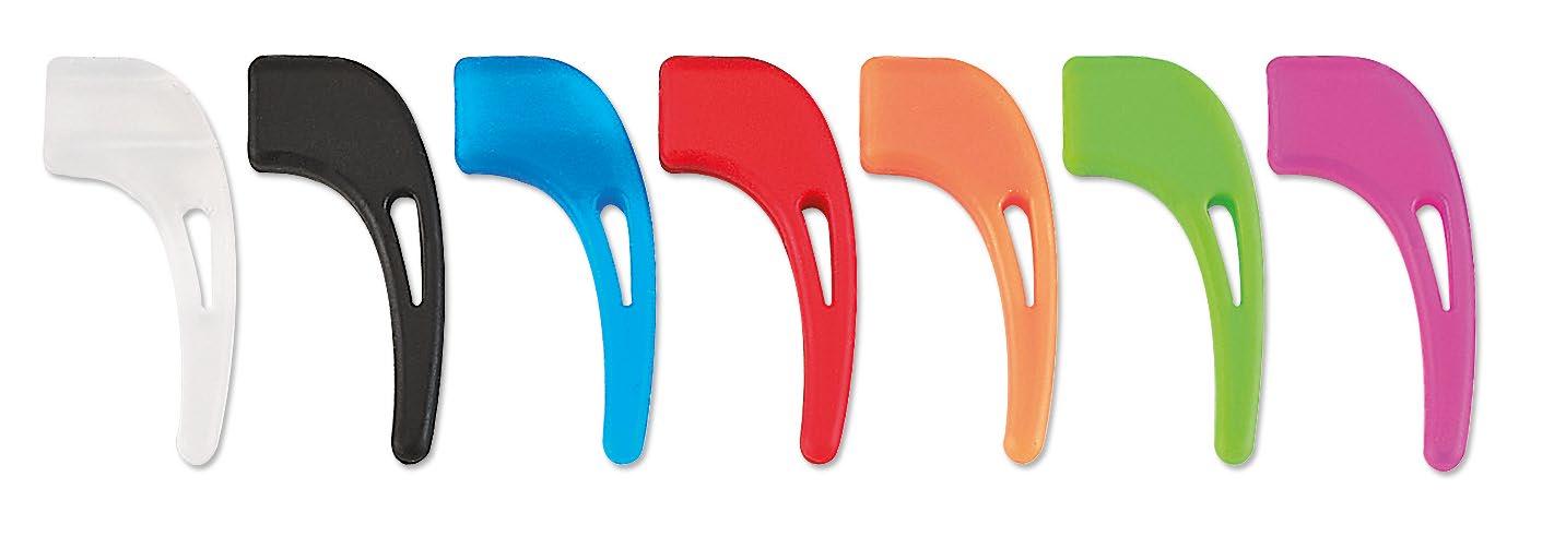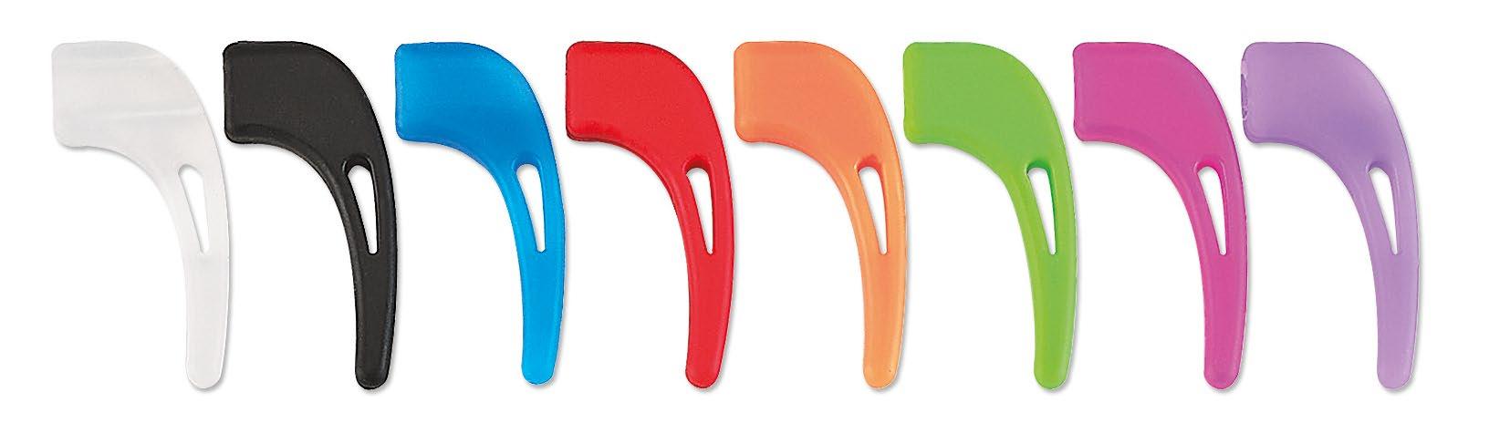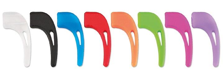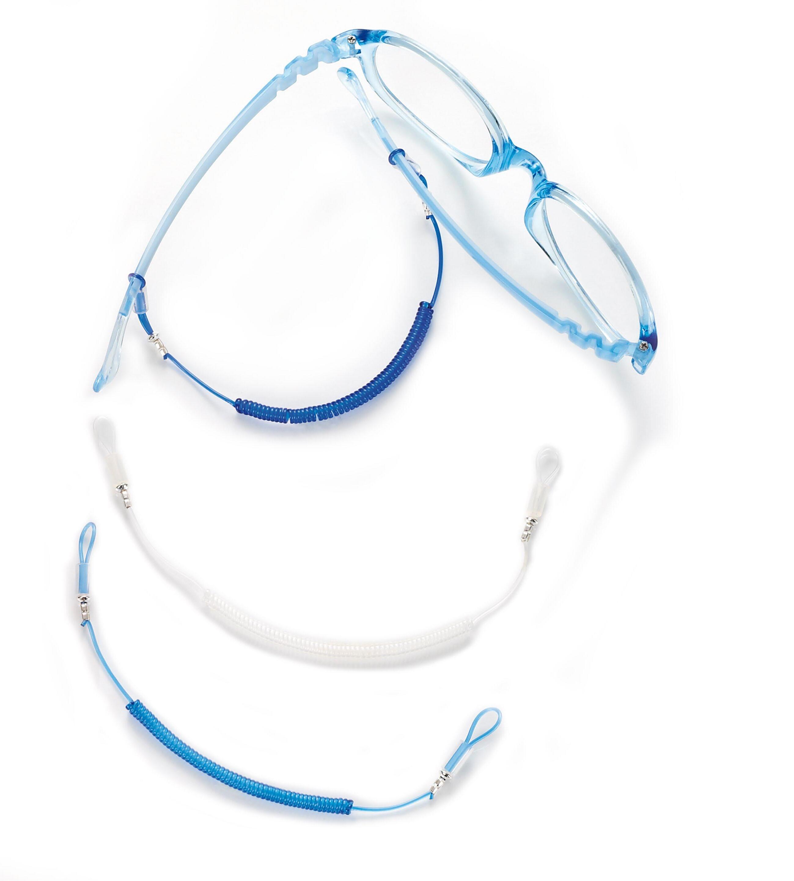 Wrap-around temples with a hook at the end combined with an adjustable elastic cord to keep the glasses in the correct position on the face.