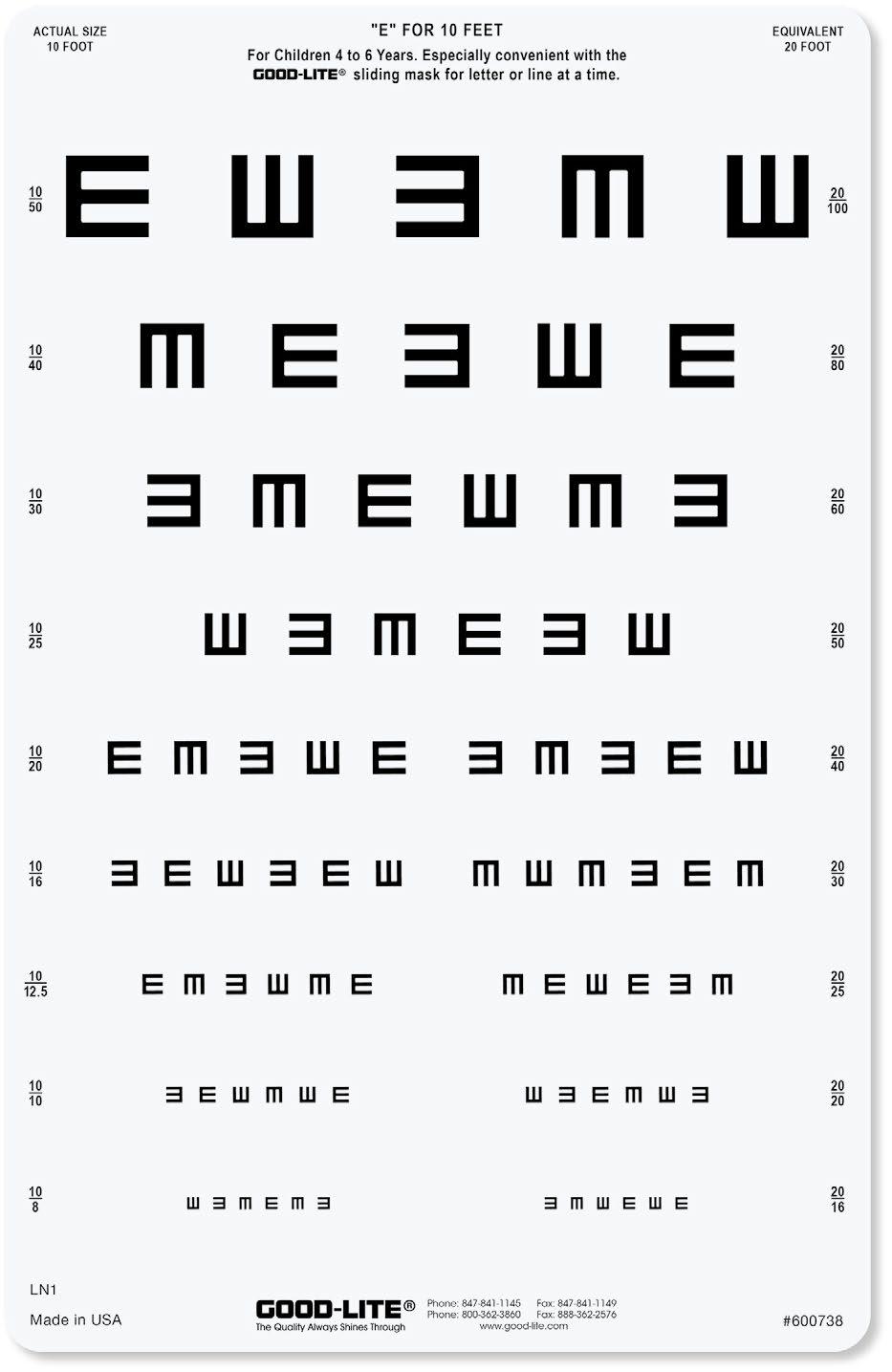 • “E” letters specific for examinations on children from 4 to 6 years old.