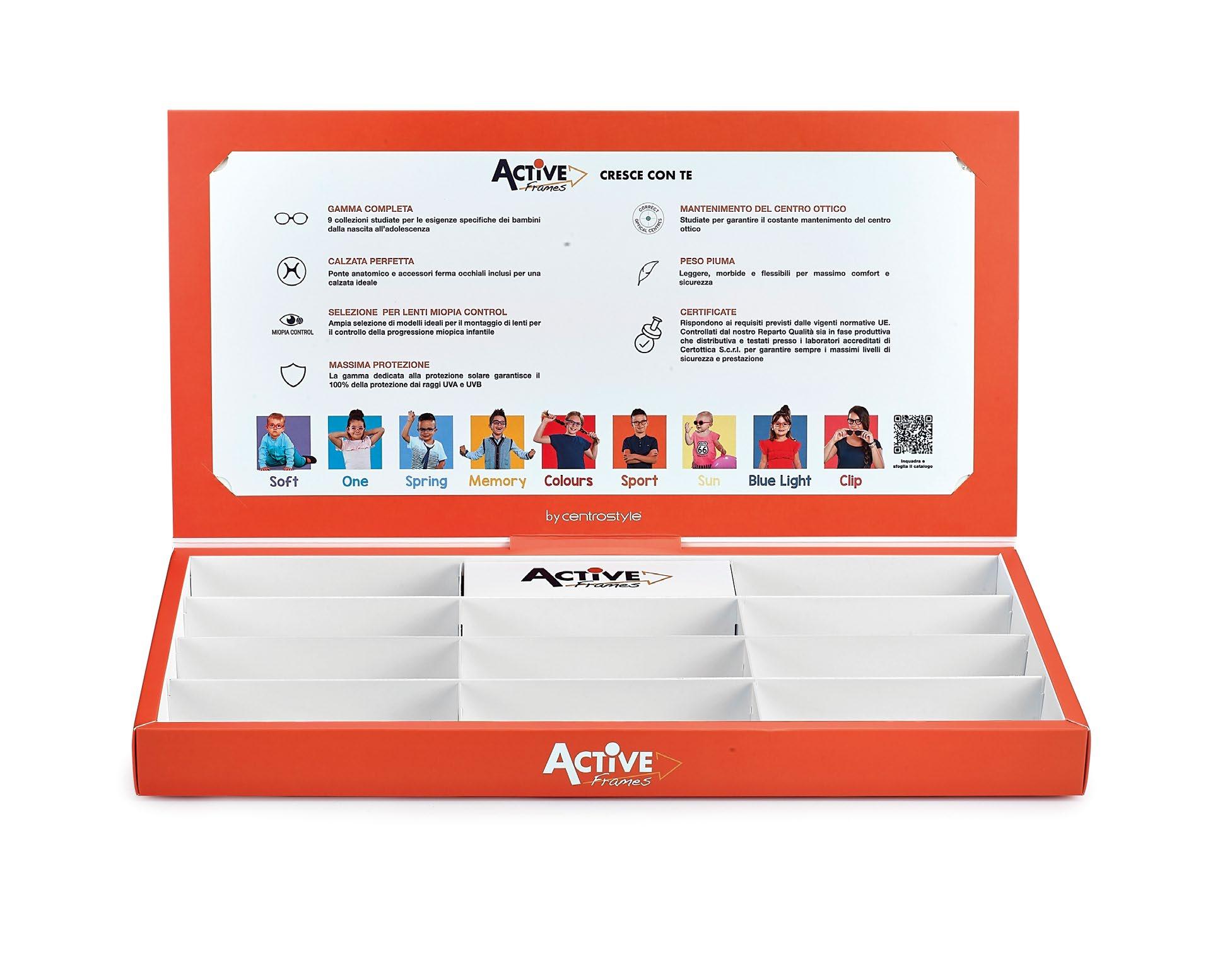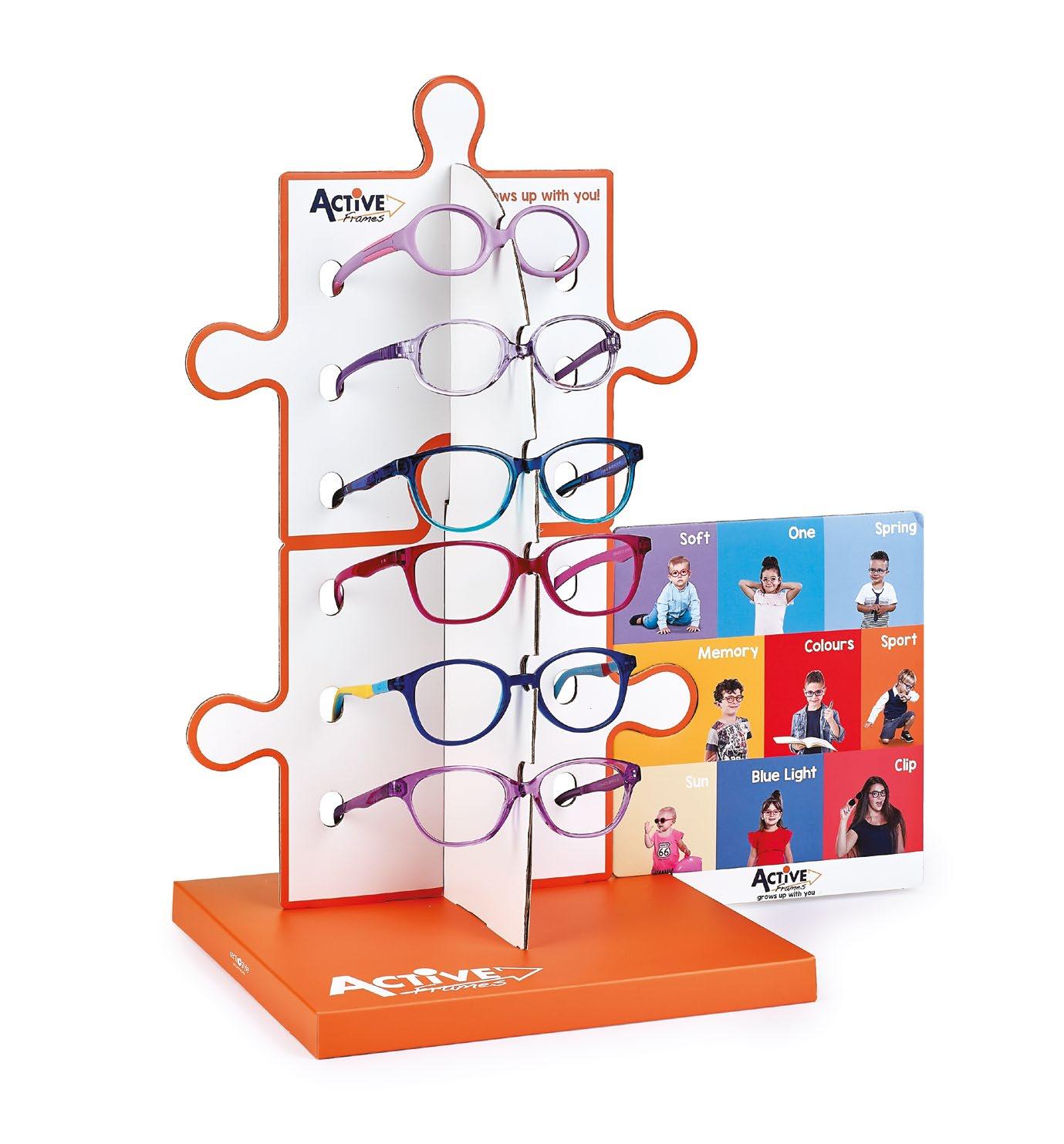 Displays for the presentation of Active Frames both suitable for the counter and the shop window.