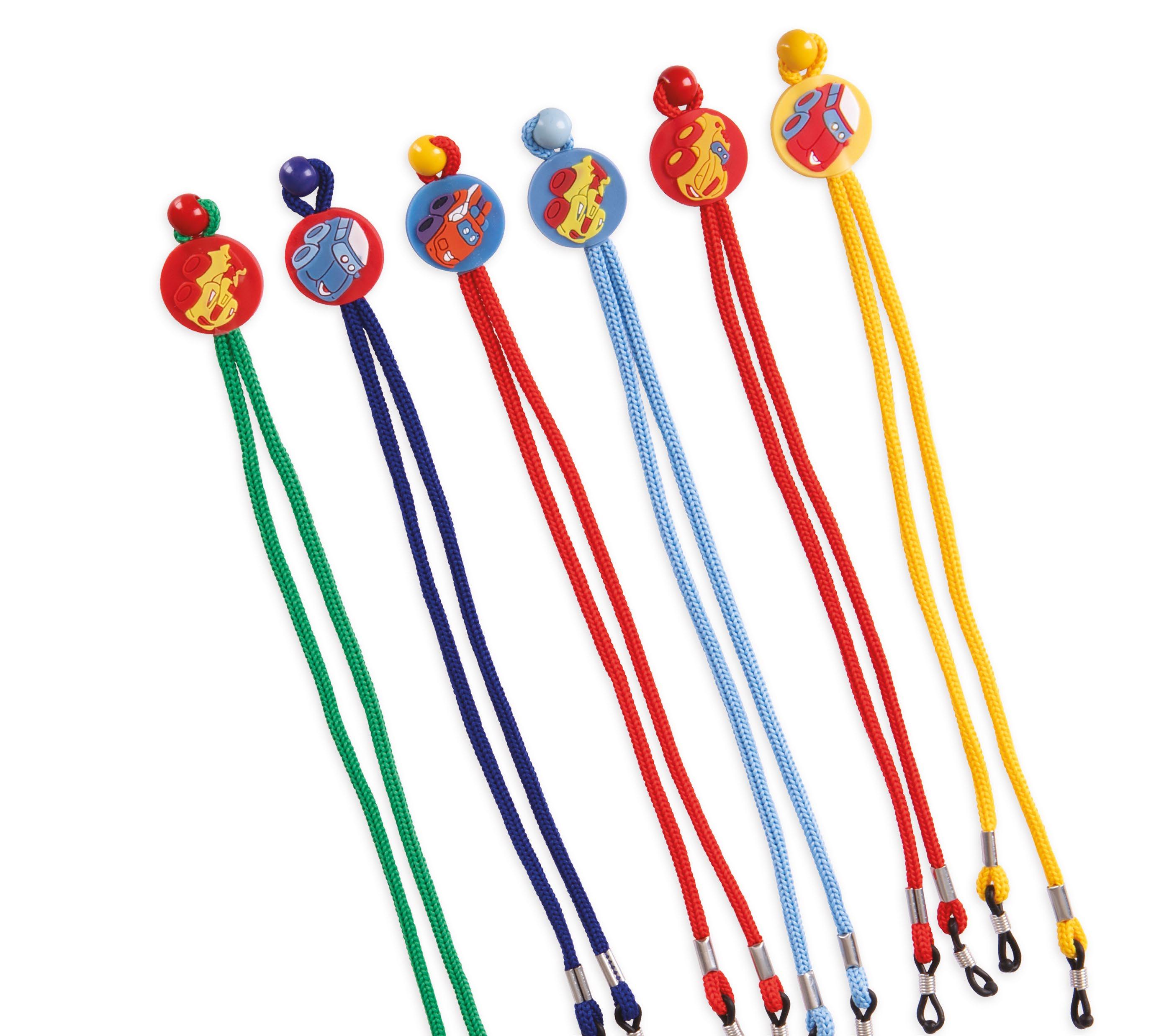 Adjustable cords for children with cars soft rubber decorations.