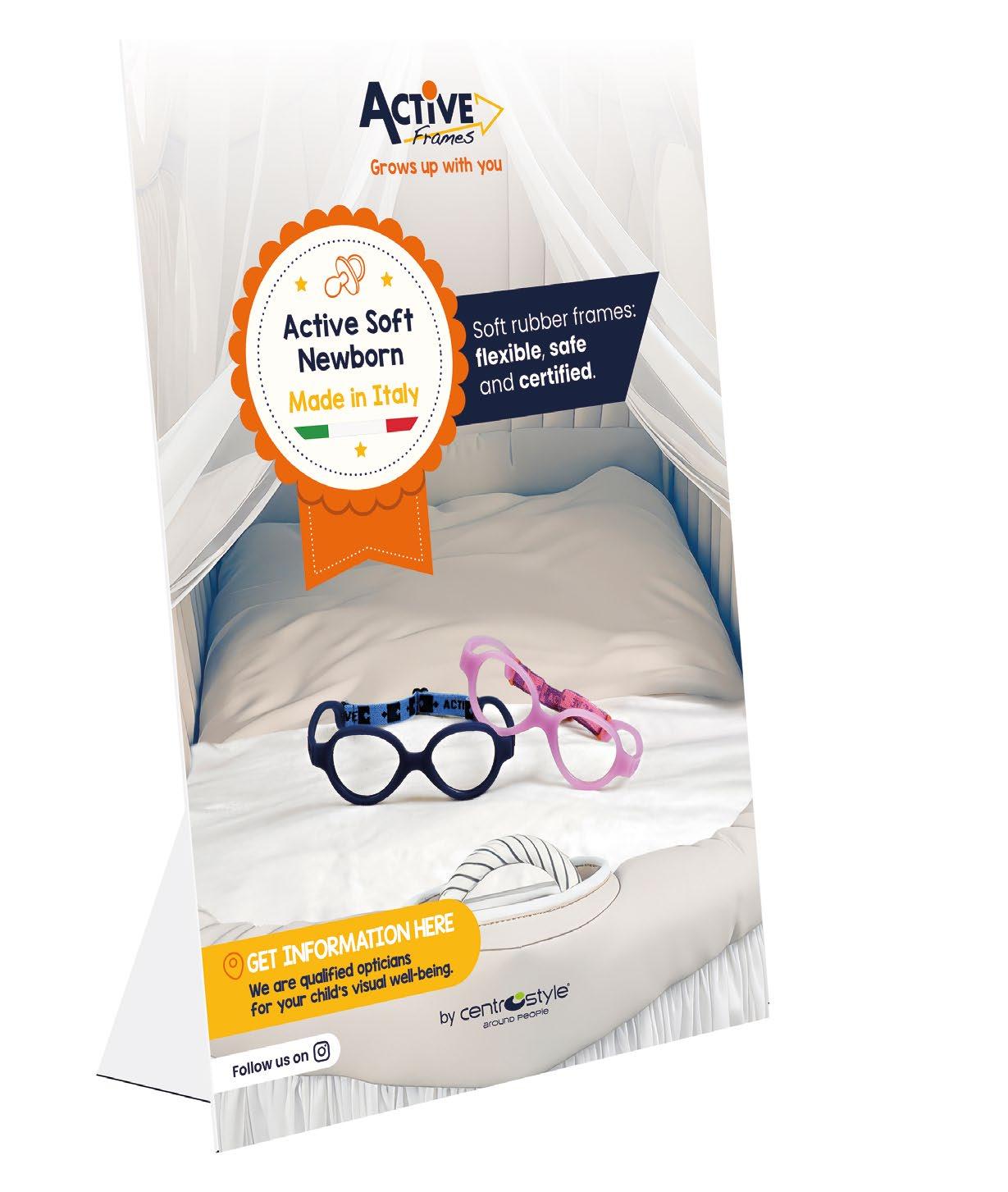Active Soft Newborn, our first collection for newborns, is entirely manufactured at our headquarters in Vedano Olona. Every detail of the frames: from design to packaging.