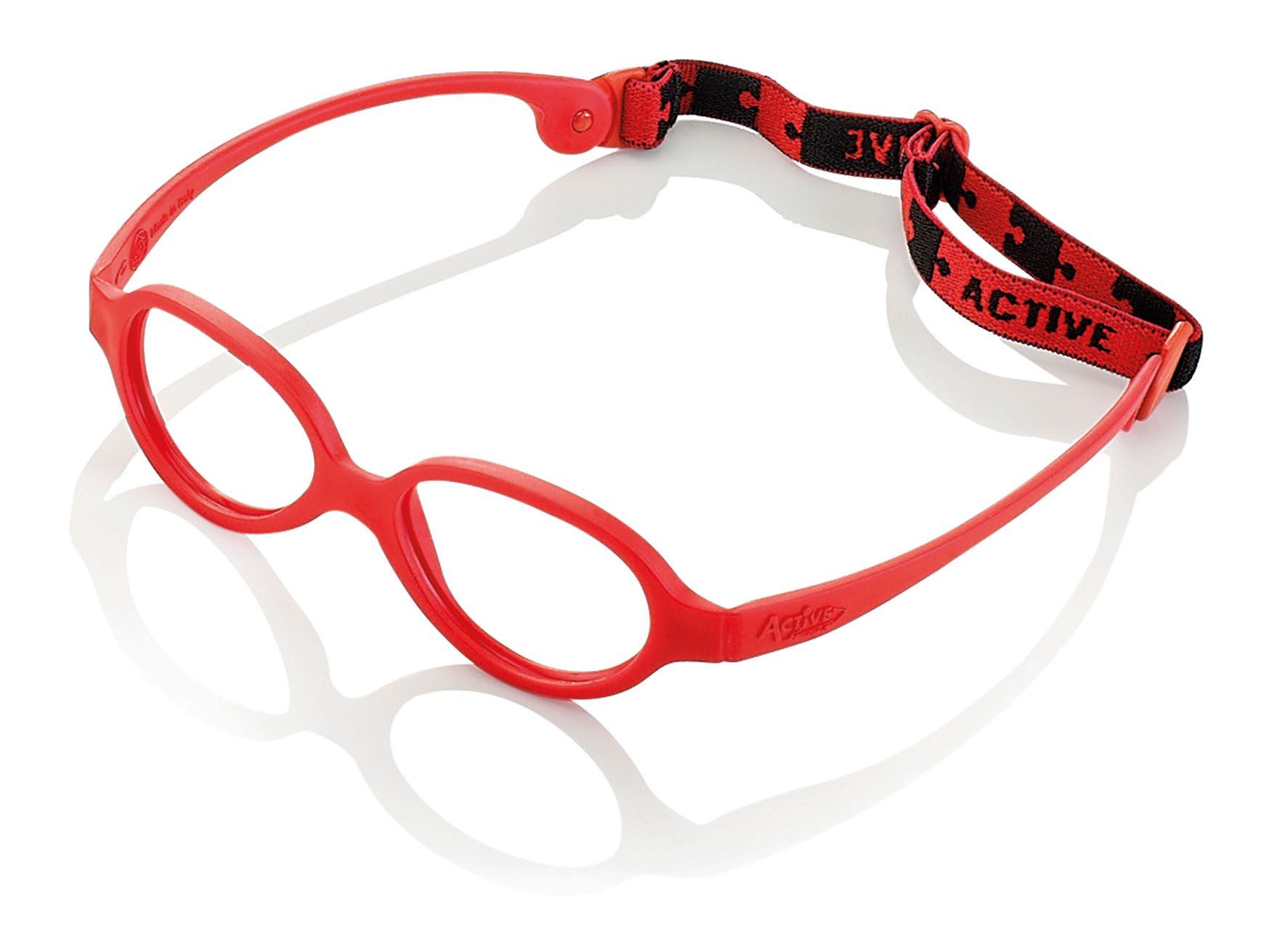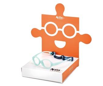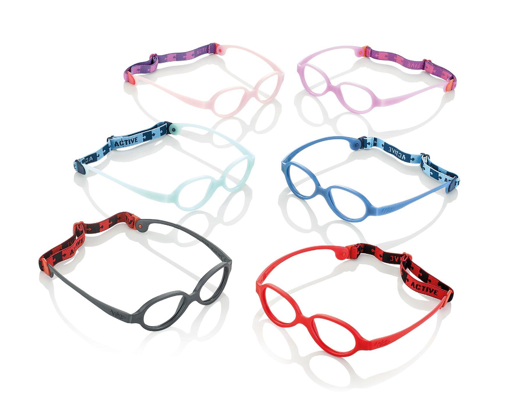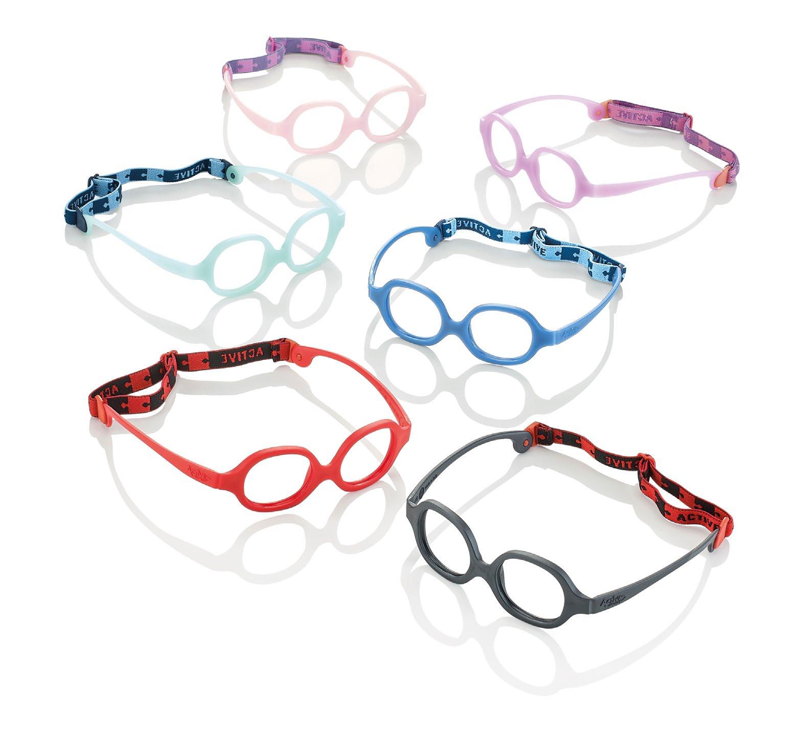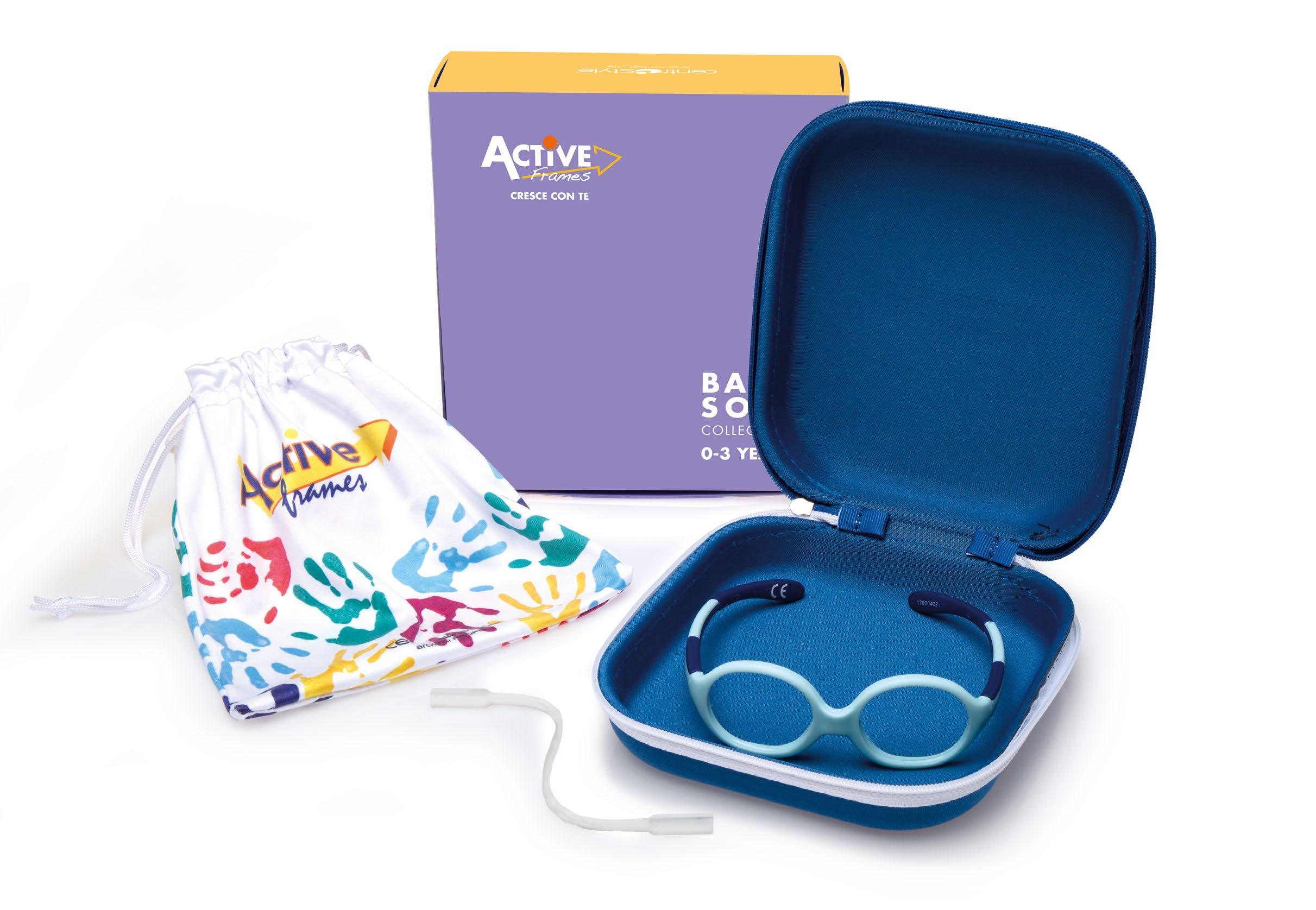 The child in this age group has a nasal septum that is not yet formed and needs to wear anatomically correct, stable, soft, light and safe glasses. Active Frames offers only frames made with soft and safe materials to allow movement. It is important that the eyewear always remains stable to ensure the correct maintenance of the optical centre position even when the head rests on a pillow, for example, in the cradle. For this reason, a cord always accompanies Active Frames.