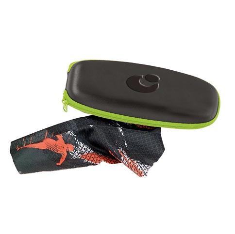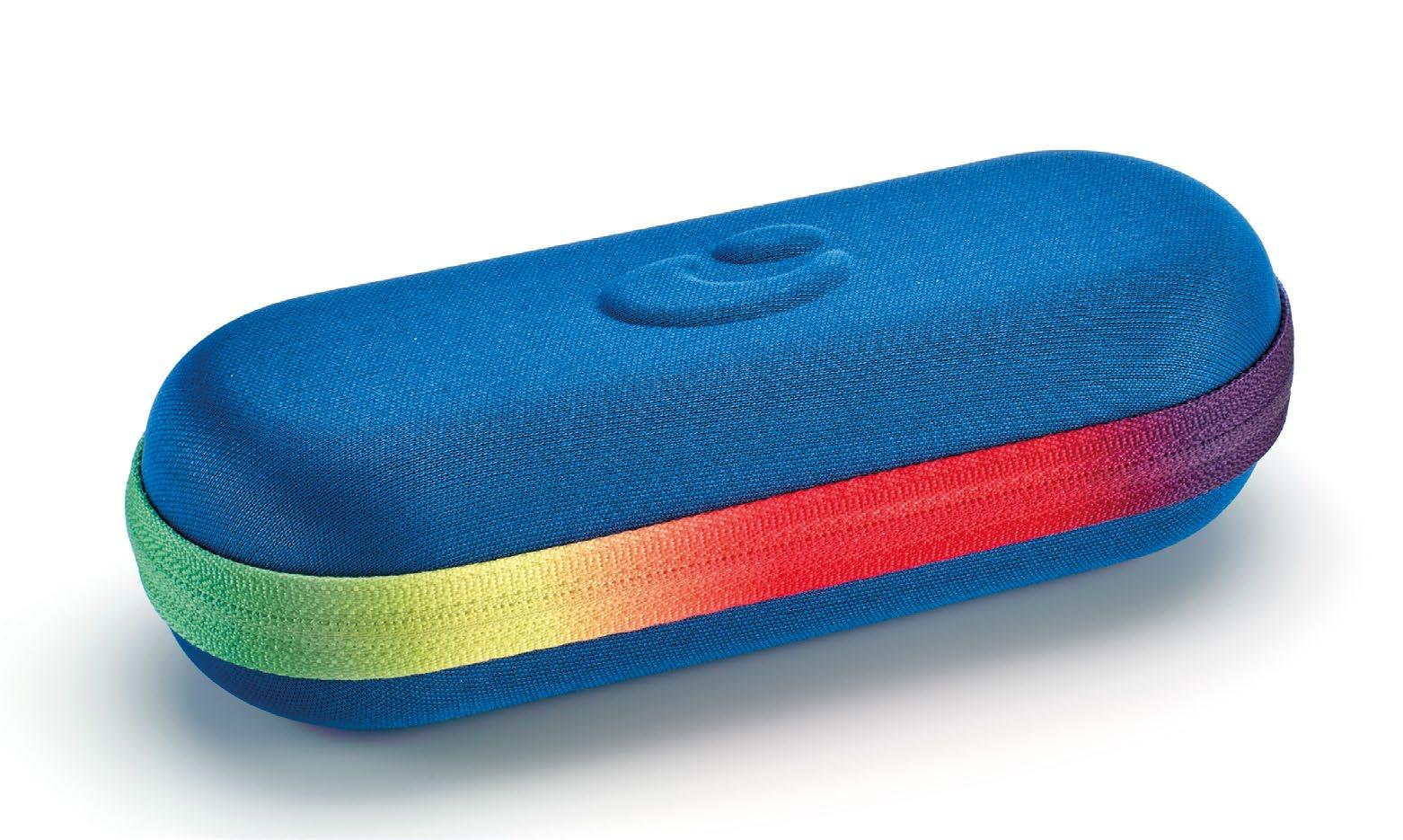 Semi-rigid case with microfibre and adjustable elastic band supplied with each pair of glasses