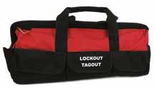 Large satchel type lockout bag, waterproof and suitable for carrying larger lockout equipment over the shoulder.