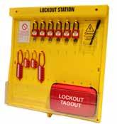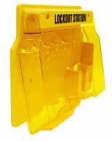 Multiple padlock positions, each position can hold 2 padlocks, a hasp, several tags and/or cable ties. Supplied with cover that enables the station to be locked out. Engineered from plastic PC.