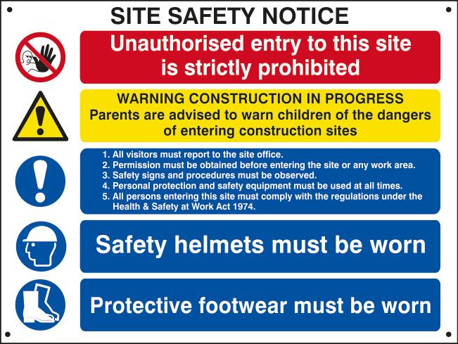 Safety Signs are a legal requirement and construction site safety signs deliver important information warning of hazards or requirements that must be followed.